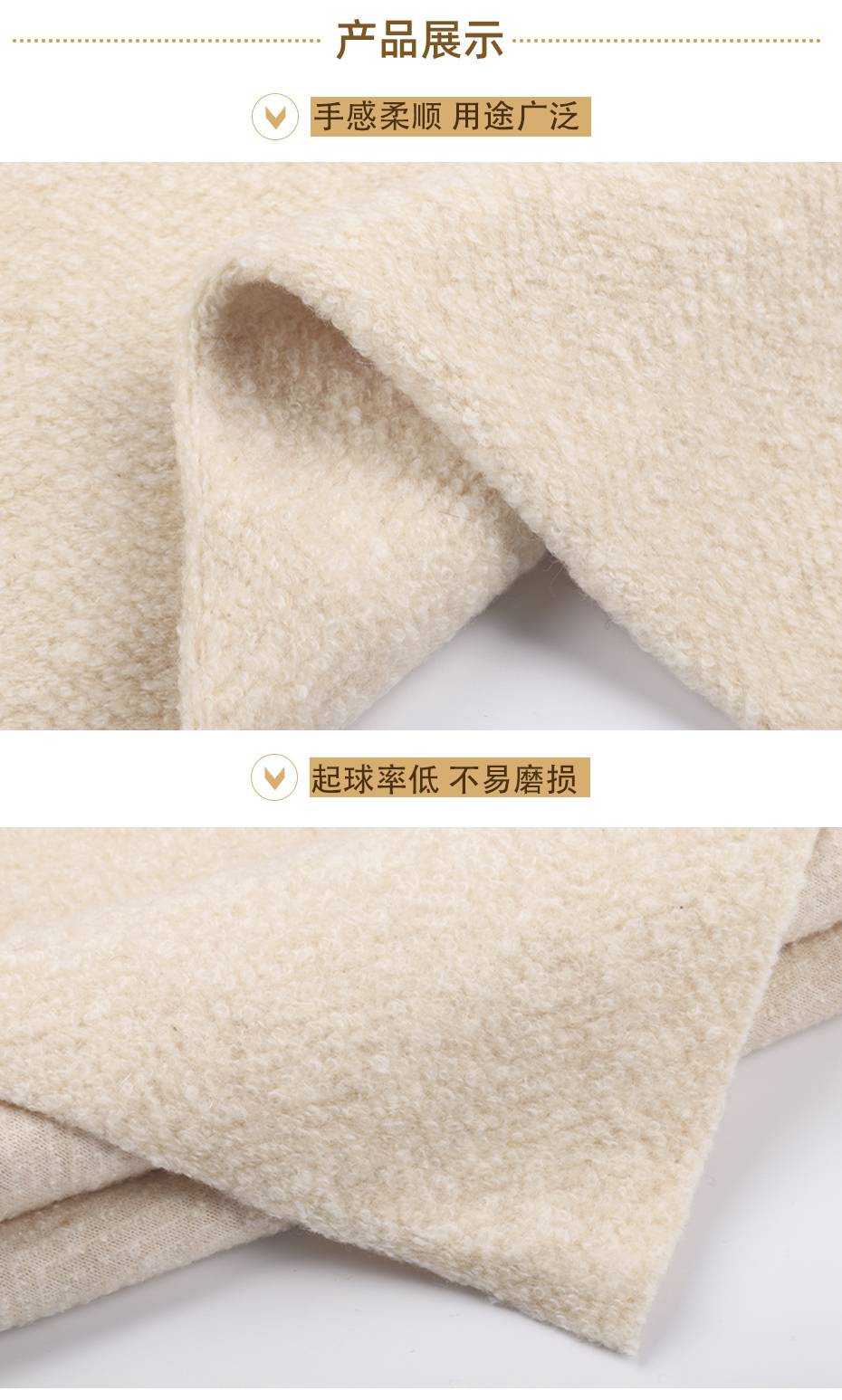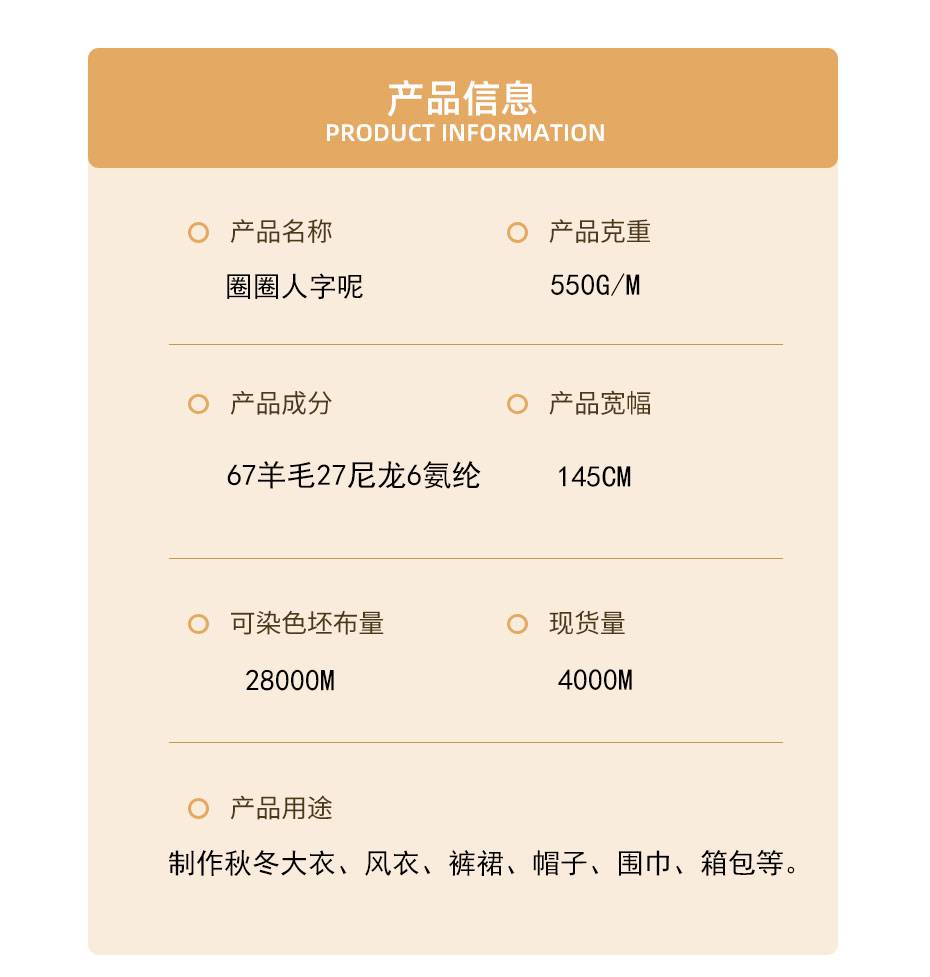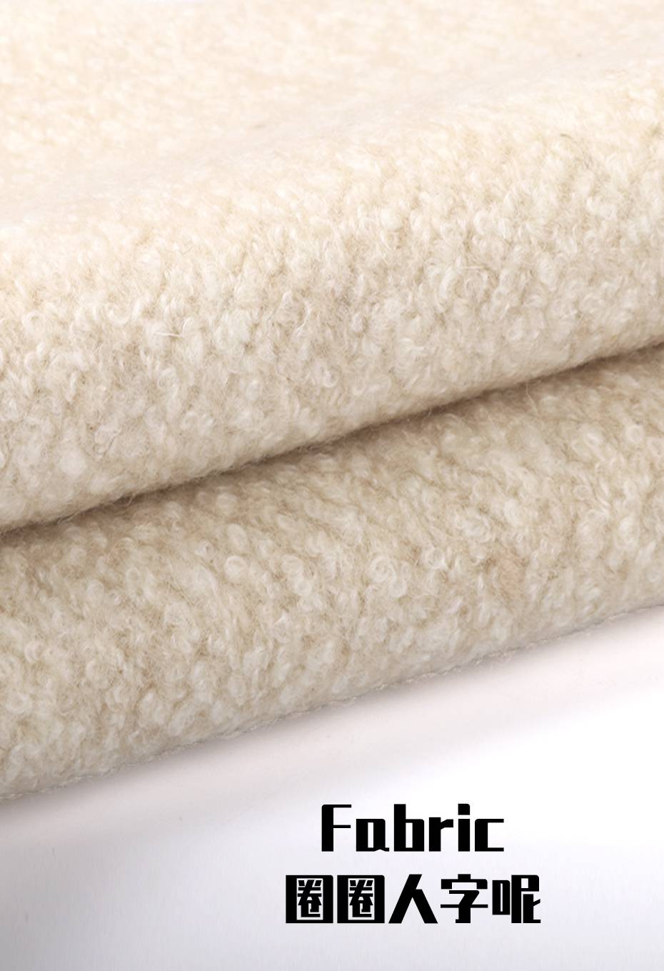 | 流行元素:*** | 颜色:米色 | 规格:67羊毛混纺圈圈人字呢面料 |