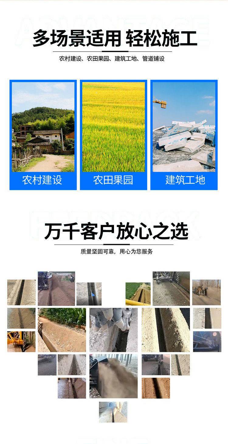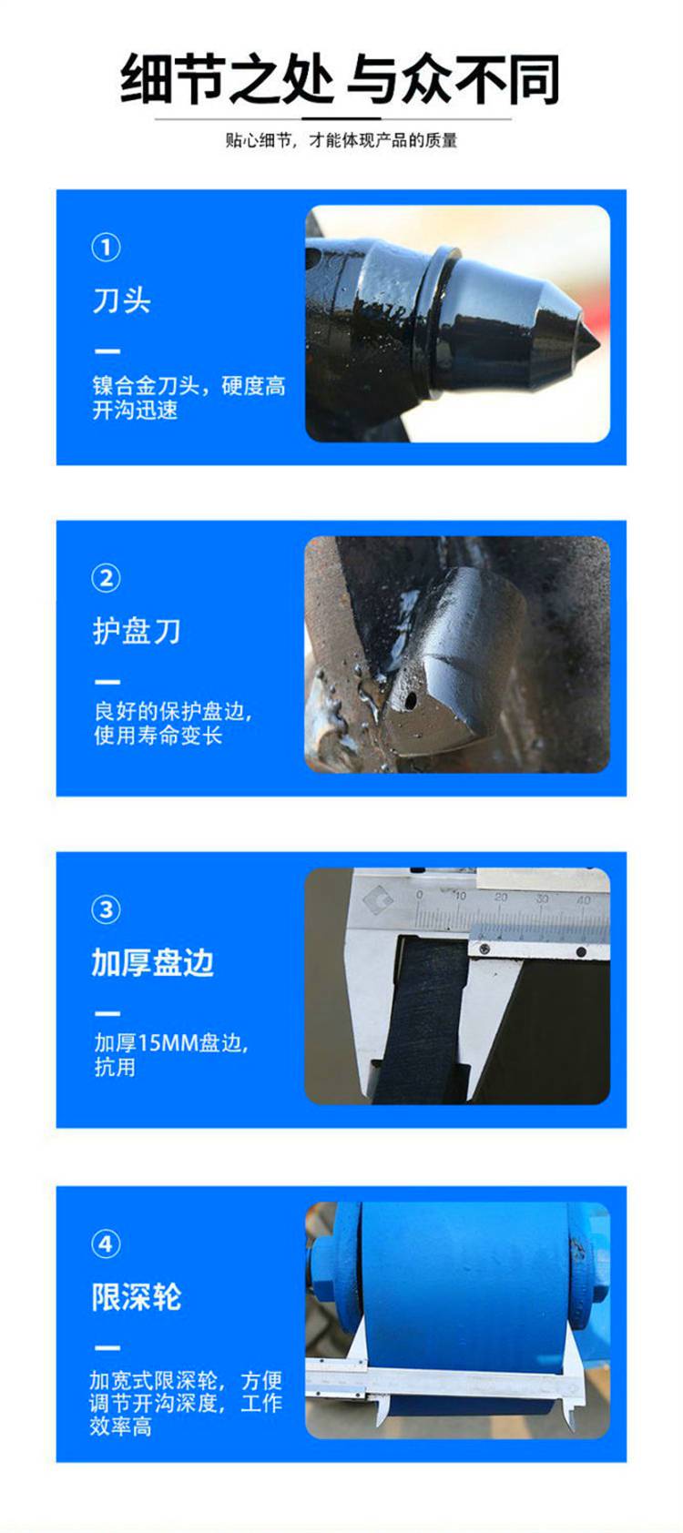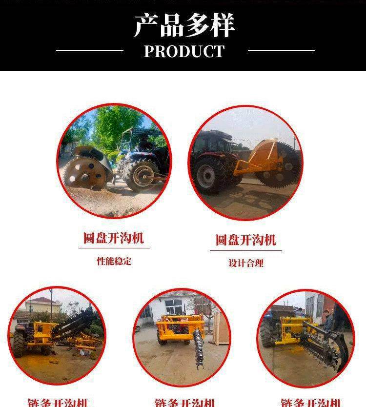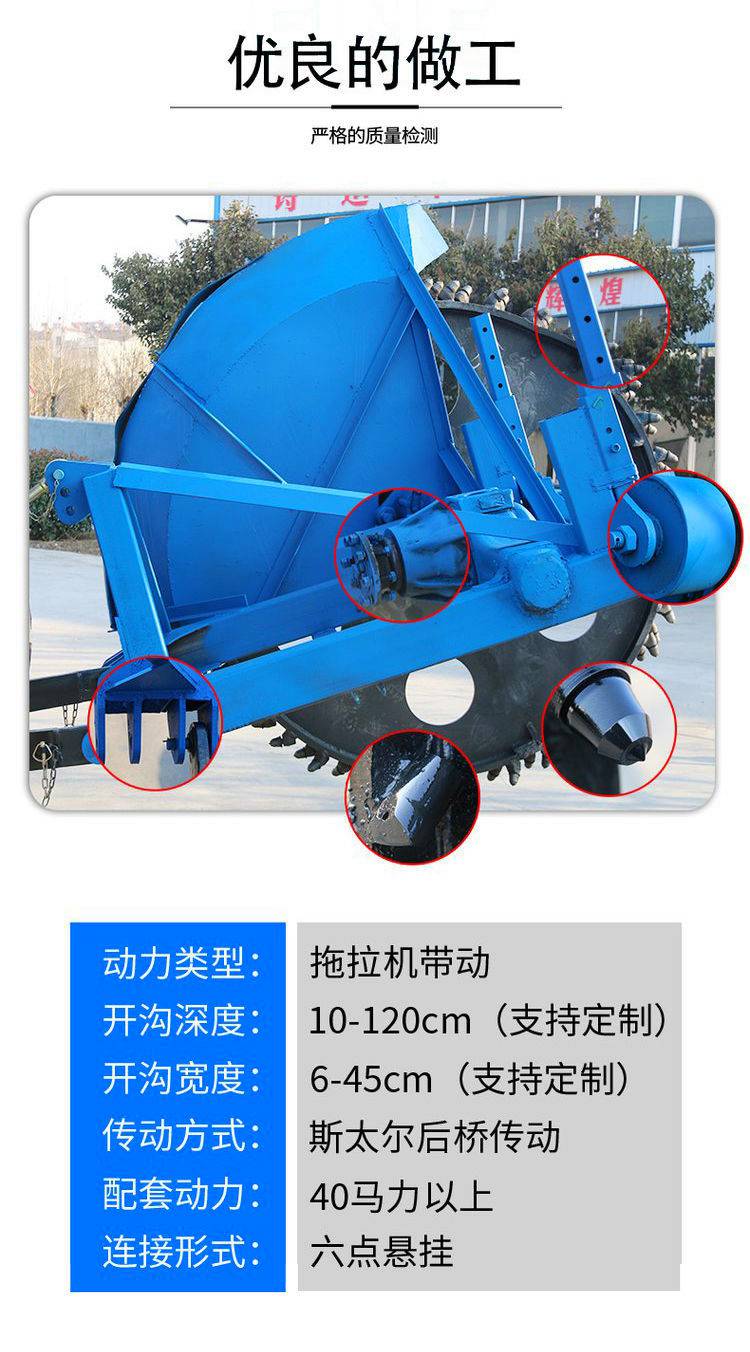 | 开沟程度:40-120cm | 整机尺寸:5*1.5*2m | 开沟速度:1~3m/min |