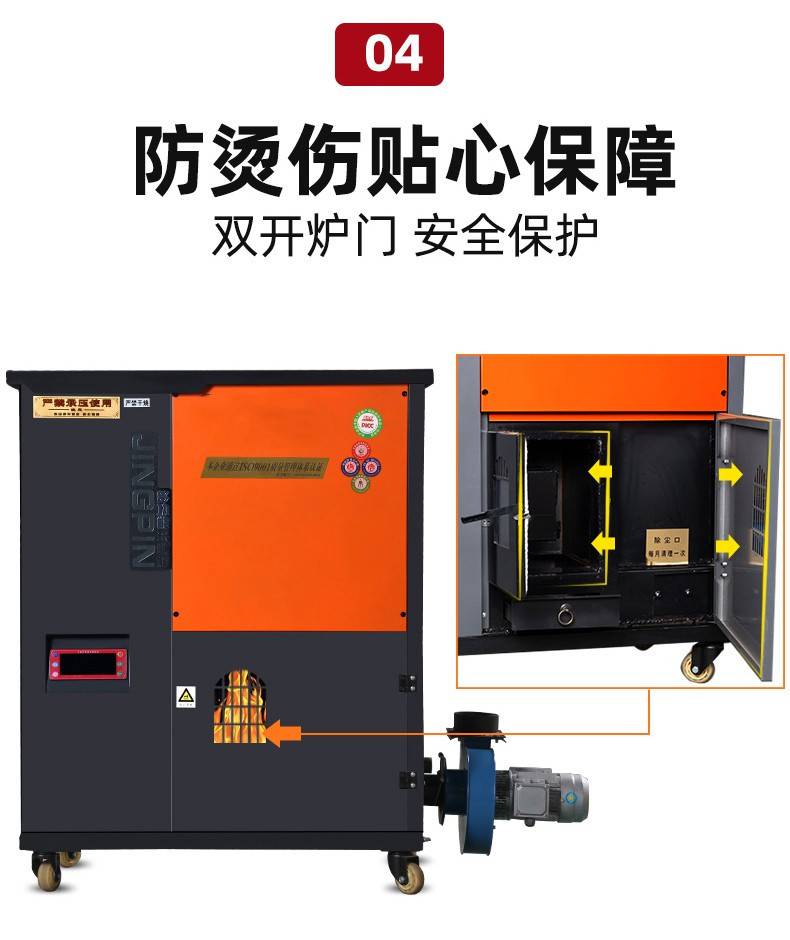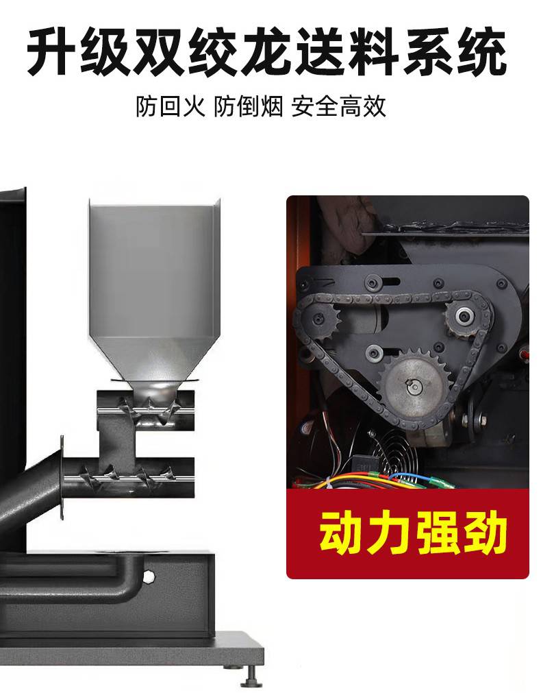 | 燃烧方式:生物质颗粒 | 机器重量:1100kg | 控制方式:自动化控制 |