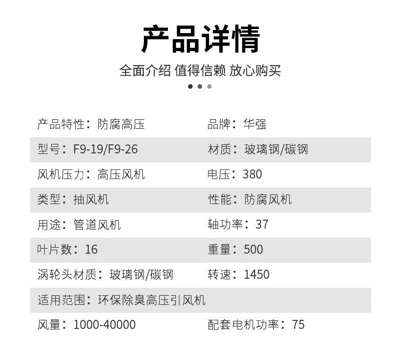 | 涡轮头材质:玻璃钢/碳钢 | 转速:1450r/mim | 适用范围:环保除臭高压引风机 |