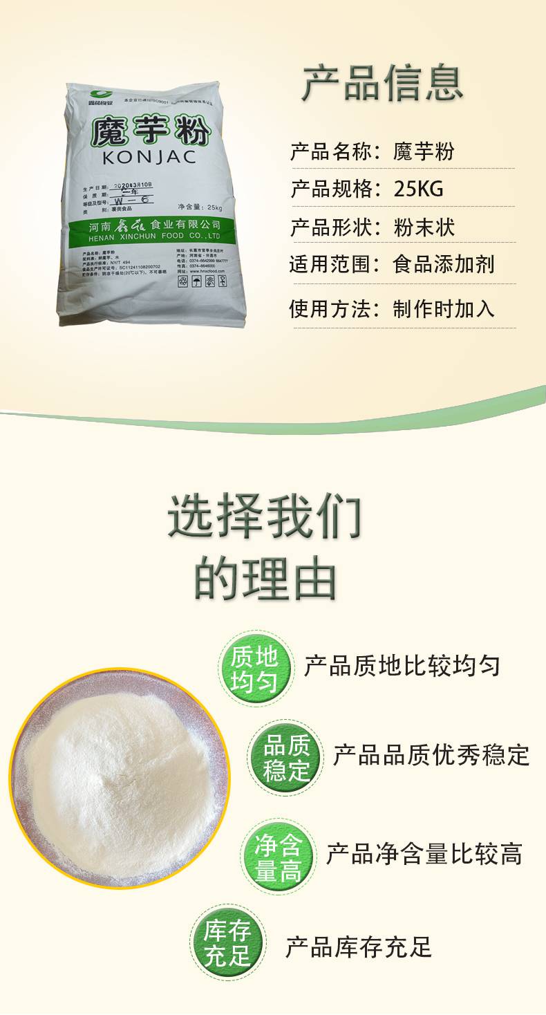 | 有效成分含量:99 | 主要成分:魔芋精粉 | 包装规格:25 |