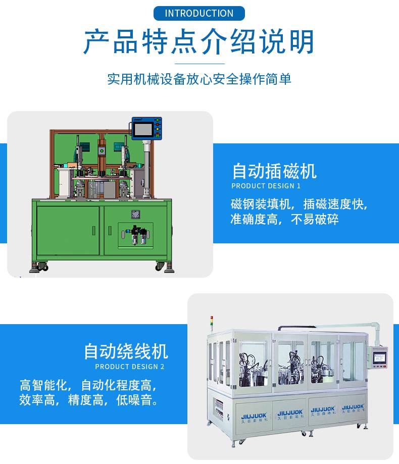 深圳久巨工业设备有限公司成立于 2010 年,是集研发、制造、销售于一体的高新技术企业,总部与研发基地分别设于深圳、东莞,并在全国设有多家分支机构,拥有 10000 m?制造基地及由经验丰富的研发、技术工程师组成的核心研发团队。 公司核心开发聚焦四大领域,主营产品包括:电声自动化装配线、电机自动化装配线、磁材磁化设备、流体点胶设备及非标自动解决方案,服务于四大领域及 3C 电子、通讯设备等关联行业。已与多家世界 500 强企业及科研机构深度合作,并获客户高度认可。 公司以技术与创新为核心,围绕四大领域形成***技术体系,已获 256 项国家***;通过 CRM、PDM、ERP 系统实现企业科学数据化管理,通过 *** 质量管理体系认证,获评广东省工程技术研究中心、“专精特新” 小巨人企业。 公司秉持 “务实、创新、规范、严谨” 价值观,以 “聚焦行业***制程,提供***自动化解决方案,让***制造更简单” 为使命,成为行业自动化领域的***。