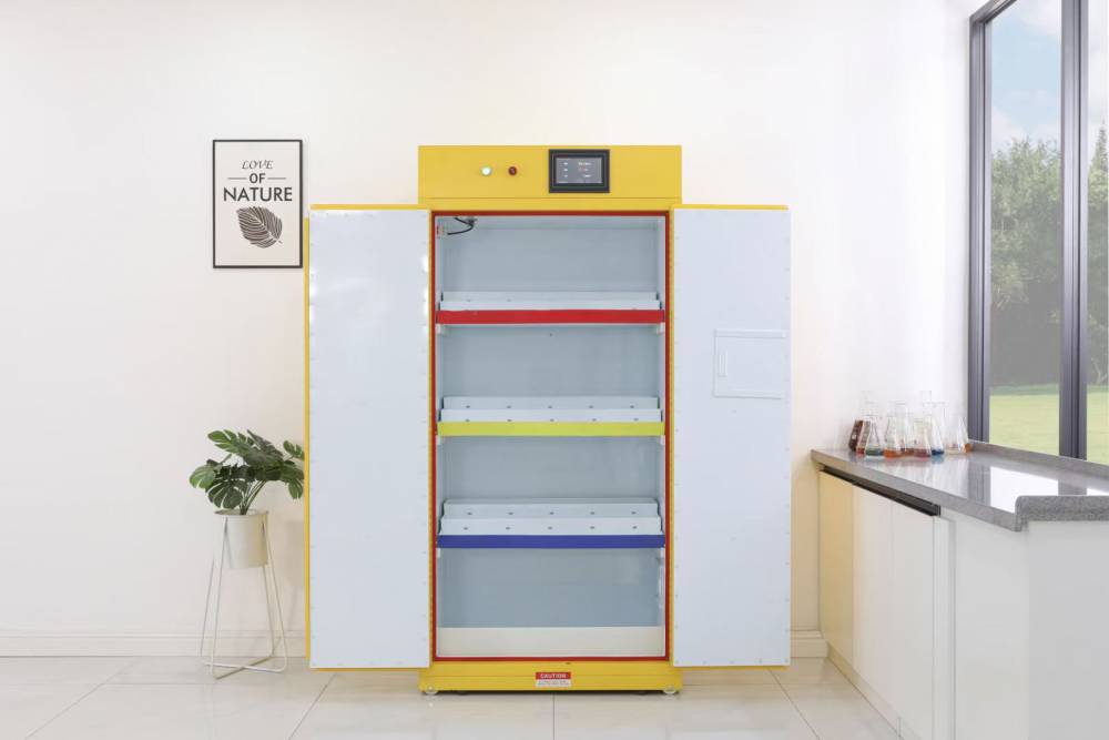 2、柜体内胆(上、下、左、右内衬板)全部采用PP(聚丙烯)板,具有防腐、防水、保温的PP材质(聚丙烯)。易燃品存储柜 防火防爆防腐蚀 自动通风