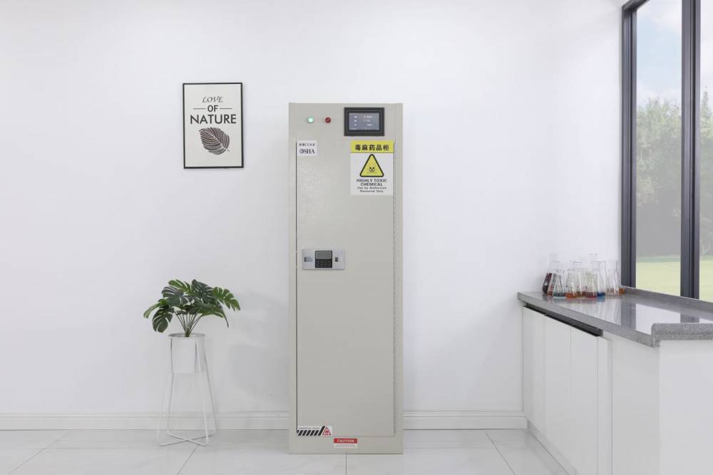 3、柜中配有3个一次注塑成型三层阶段式活动搁板,柜体底部设可以存放不少于120mm厚黄沙的填埋腔,用于埋放、黄磷(白磷)等易燃物品。