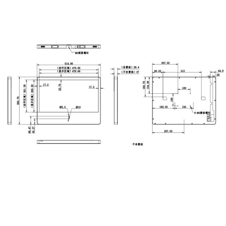 514.06 (W) mm × 383.79 (H) mm × 27 (D) mm(无底座),