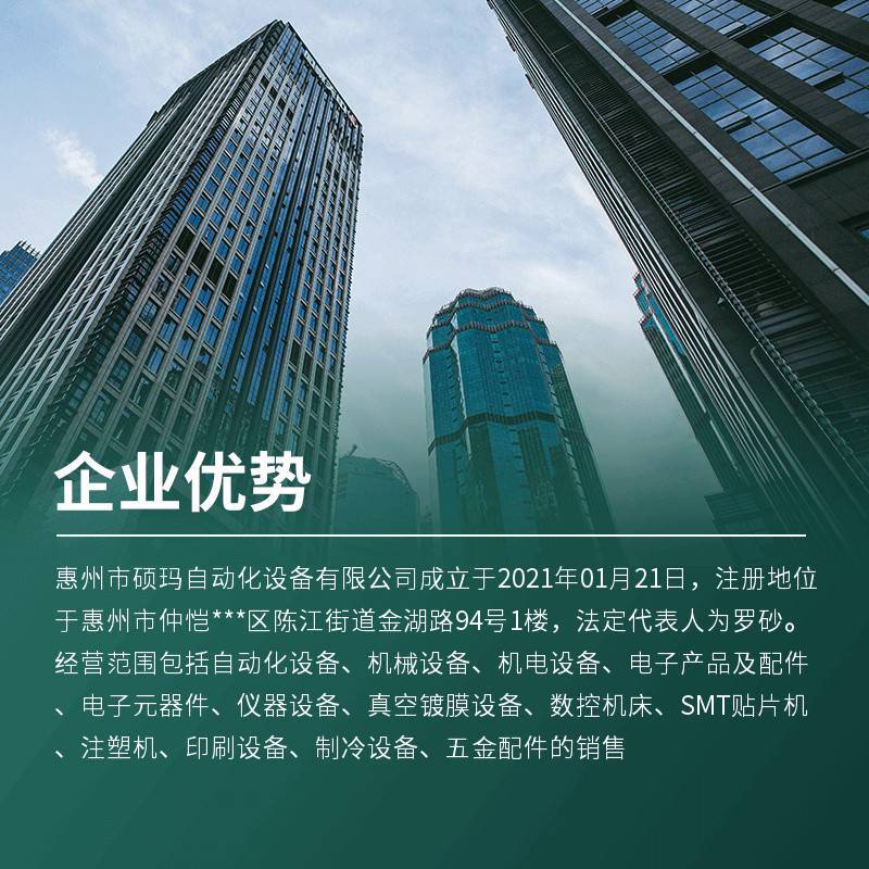| 经营范围 | 一般项目:机械设备销售;机械设备租赁;电子、机械设备维护(不含特种设备);装卸搬运;电子元器件批发;电力电子元器件销售;特种设备销售;旧货销售;金属成形机床销售;金属切削机床销售;数控机床销售;仪器仪表销售;智能仪器仪表销售;再生资源销售;资源再生利用技术研发。(除依法须经批准的项目外,凭营业执照依法自主开展经营活动) | ||