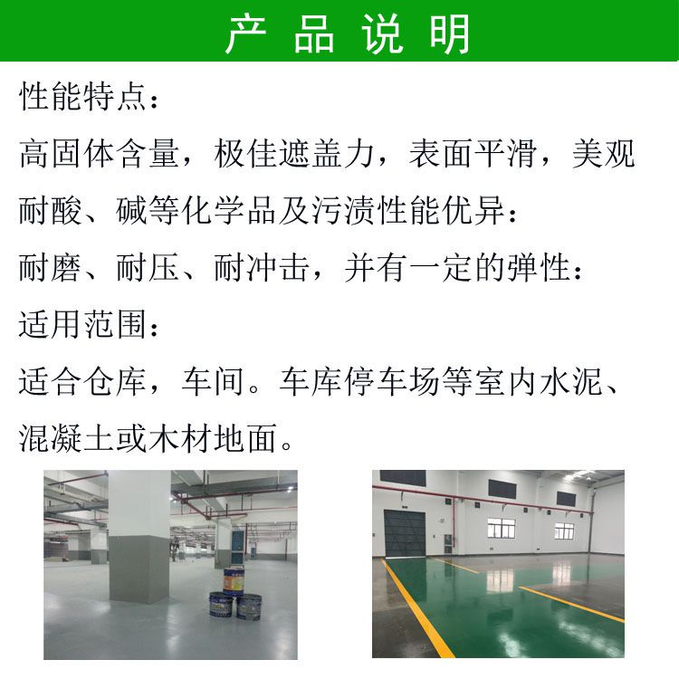 | 用途范围:工厂地面,车库 | 是否危险化学品:否 | 类别:环氧砂浆地坪漆 |