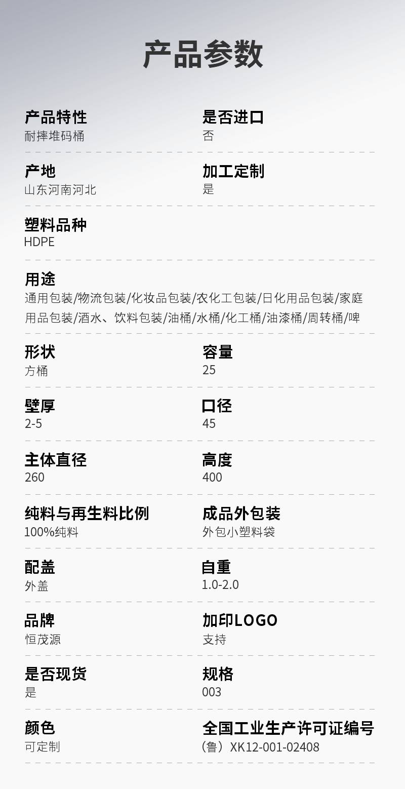 | 形状:方桶 | 容量:25L | 壁厚:2-5mm |