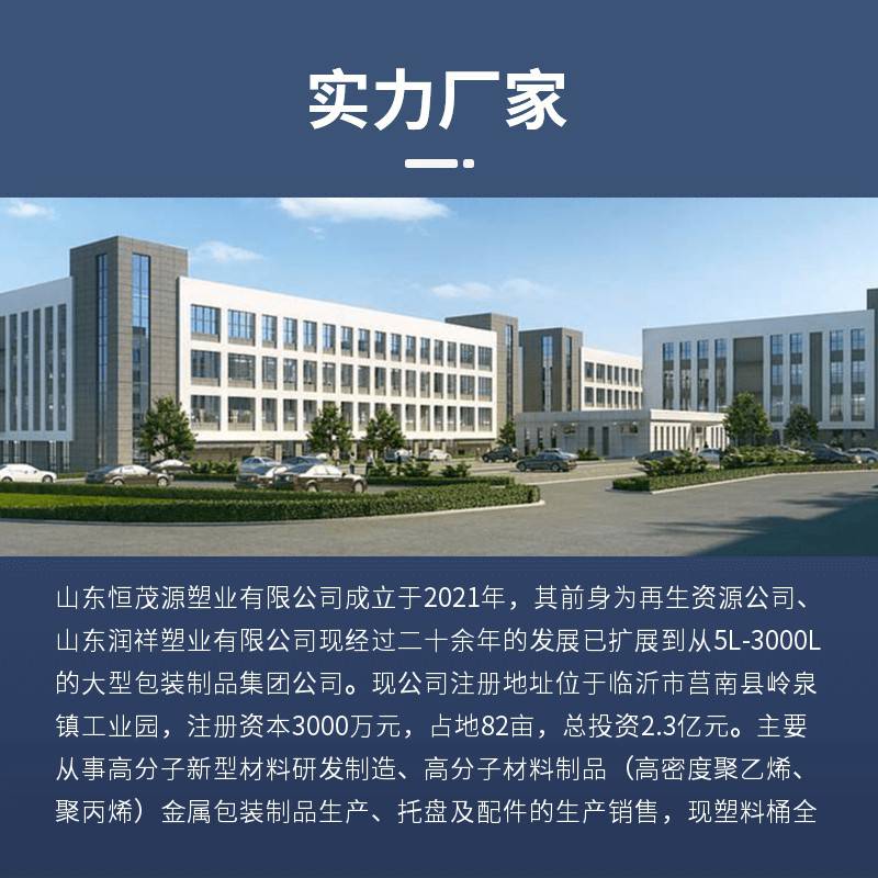 山东恒茂源塑业有限公司成立于2021年,其前身为再生资源公司、山东润祥塑业有限公司现经过二十余年的发展已扩展到从5L-3000L的大型包装制品集团公司。现公司注册地址位于临沂市莒南县岭泉镇工业园,注册资本3000万元,占地82亩,总投资2.3亿元。主要从事高分子新型材料研发制造、高分子材料制品(高密度聚乙烯、聚丙烯)金属包装制品生产、托盘及配件的生产销售,现塑料桶全系列生产线、铁桶全系列生产线。包含:开口、闭口、食品级、医药级、出口级、高清洁、内涂EPR PVF等都可根据客户需求提供定制。建设生产车间3座、仓库3座、办公区及其它配套设施完善、现公司在江苏、宁夏、天津均有分厂,可根据客户位置就近发货。 公司引进德国***技术,国内***设备,利用各高校科研机构***研发成果,在普通树脂中添加改性改良剂,生产出高分子新型树脂材料,其具有质轻、耐酸碱、耐腐蚀、外观鲜艳等优良性能,结合高分子树脂高密度聚乙烯、高分子树脂聚丙烯、色母、钢管、铁等为主要原料生产、加工食品包装、医药包装、化工产品塑料及金属包装容器、托盘、金属托盘、铁桶等产品。 项目生产产品生产工艺成熟,生产设备***;公司本着做大做强、规模化、品牌化的理念,在管理模式,组织结构,激励制度,科技创新等方面严格按照科技型现代化企业要求执行。随着高分子材料行业市场化程度逐步提高,从上游供应到市场部署,布局资源(资金、技术、人才)集中的趋势,并根据所具优势以新产品***市场,并以优制服务参与竟争,稳定市场。以数字化生产、管理、存储方式***创新,以***的产品质量,最完善的服务体系满足国内外客户。 我们公司的理念: 诚信为本、实力为先,全心全意为客户 ,我们公司秉承客户至上、服务至上的经营理念,以***的品质、专业的技术服务实力,保障客户在信息时代的高速路上驰骋,又以稳固、发展、忠诚、高效、团结与创新的精神,尊重人才注重技术,使客户在享受信息科技发展***成果的同时不断获得的收益。