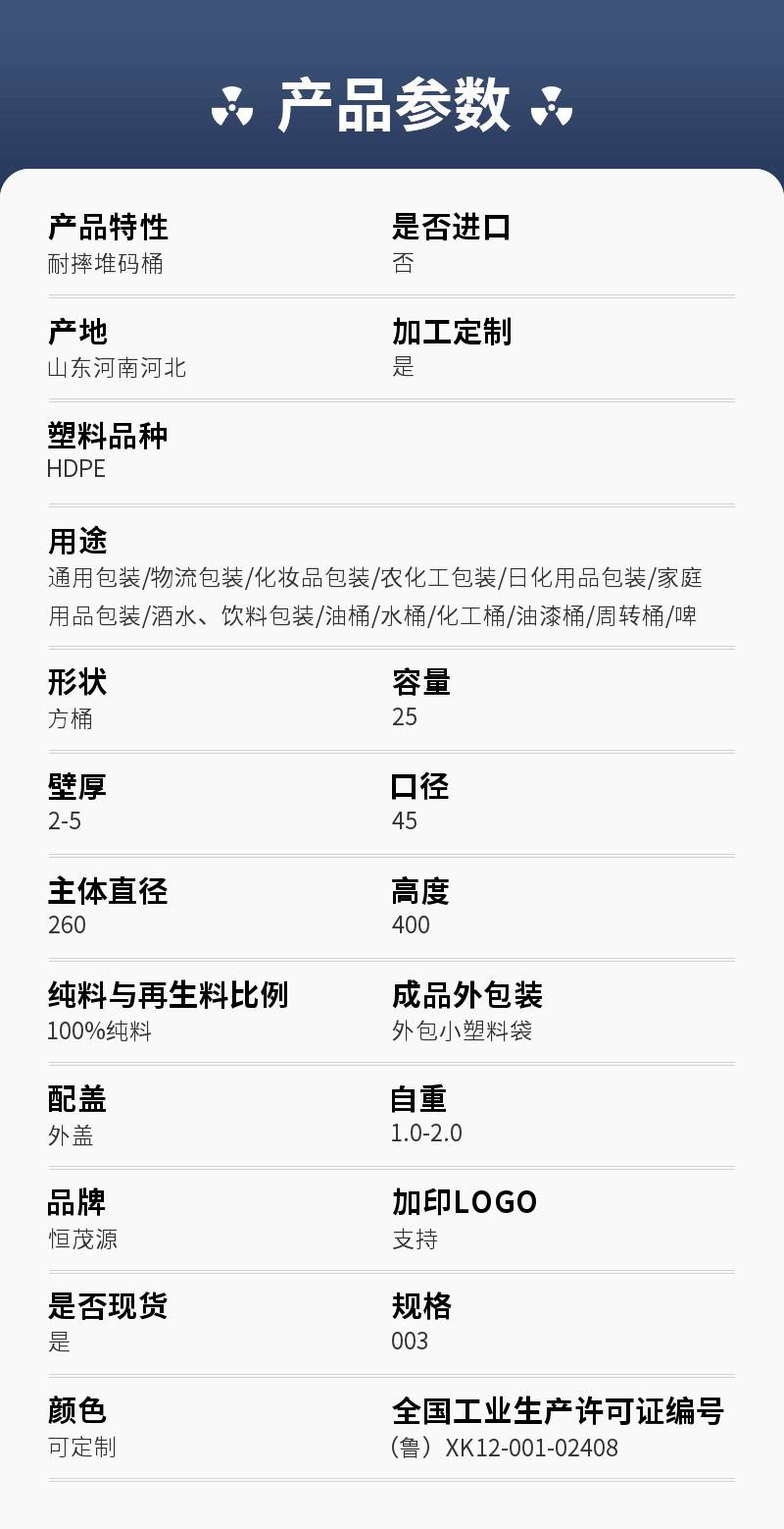 | 形状:方桶 | 容量:25L | 壁厚:2-5mm |