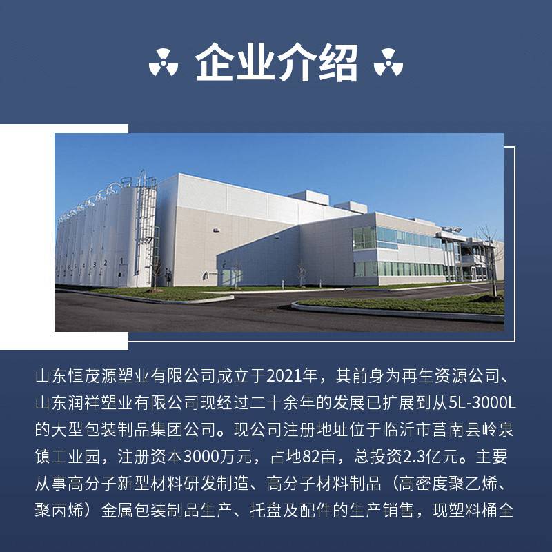山东恒茂源塑业有限公司成立于2021年,其前身为再生资源公司、山东润祥塑业有限公司现经过二十余年的发展已扩展到从5L-3000L的大型包装制品集团公司。现公司注册地址位于临沂市莒南县岭泉镇工业园,注册资本3000万元,占地82亩,总投资2.3亿元。主要从事高分子新型材料研发制造、高分子材料制品(高密度聚乙烯、聚丙烯)金属包装制品生产、托盘及配件的生产销售,现塑料桶全系列生产线、铁桶全系列生产线。包含:开口、闭口、食品级、医药级、出口级、高清洁、内涂EPR PVF等都可根据客户需求提供定制。建设生产车间3座、仓库3座、办公区及其它配套设施完善、现公司在江苏、宁夏、天津均有分厂,可根据客户位置就近发货。 公司引进德国***技术,国内***设备,利用各高校科研机构***研发成果,在普通树脂中添加改性改良剂,生产出高分子新型树脂材料,其具有质轻、耐酸碱、耐腐蚀、外观鲜艳等优良性能,结合高分子树脂高密度聚乙烯、高分子树脂聚丙烯、色母、钢管、铁等为主要原料生产、加工食品包装、医药包装、化工产品塑料及金属包装容器、托盘、金属托盘、铁桶等产品。 项目生产产品生产工艺成熟,生产设备***;公司本着做大做强、规模化、品牌化的理念,在管理模式,组织结构,激励制度,科技创新等方面严格按照科技型现代化企业要求执行。随着高分子材料行业市场化程度逐步提高,从上游供应到市场部署,布局资源(资金、技术、人才)集中的趋势,并根据所具优势以新产品***市场,并以优制服务参与竟争,稳定市场。以数字化生产、管理、存储方式***创新,以***的产品质量,最完善的服务体系满足国内外客户。 我们公司的理念: 诚信为本、实力为先,全心全意为客户 ,我们公司秉承客户至上、服务至上的经营理念,以***的品质、专业的技术服务实力,保障客户在信息时代的高速路上驰骋,又以稳固、发展、忠诚、高效、团结与创新的精神,尊重人才注重技术,使客户在享受信息科技发展***成果的同时不断获得的收益。