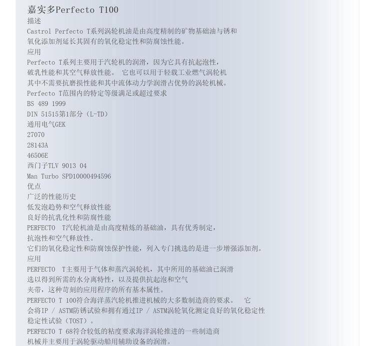 嘉实多透平油Perfecto T32 T46 T68 T100汽轮涡轮机油18L