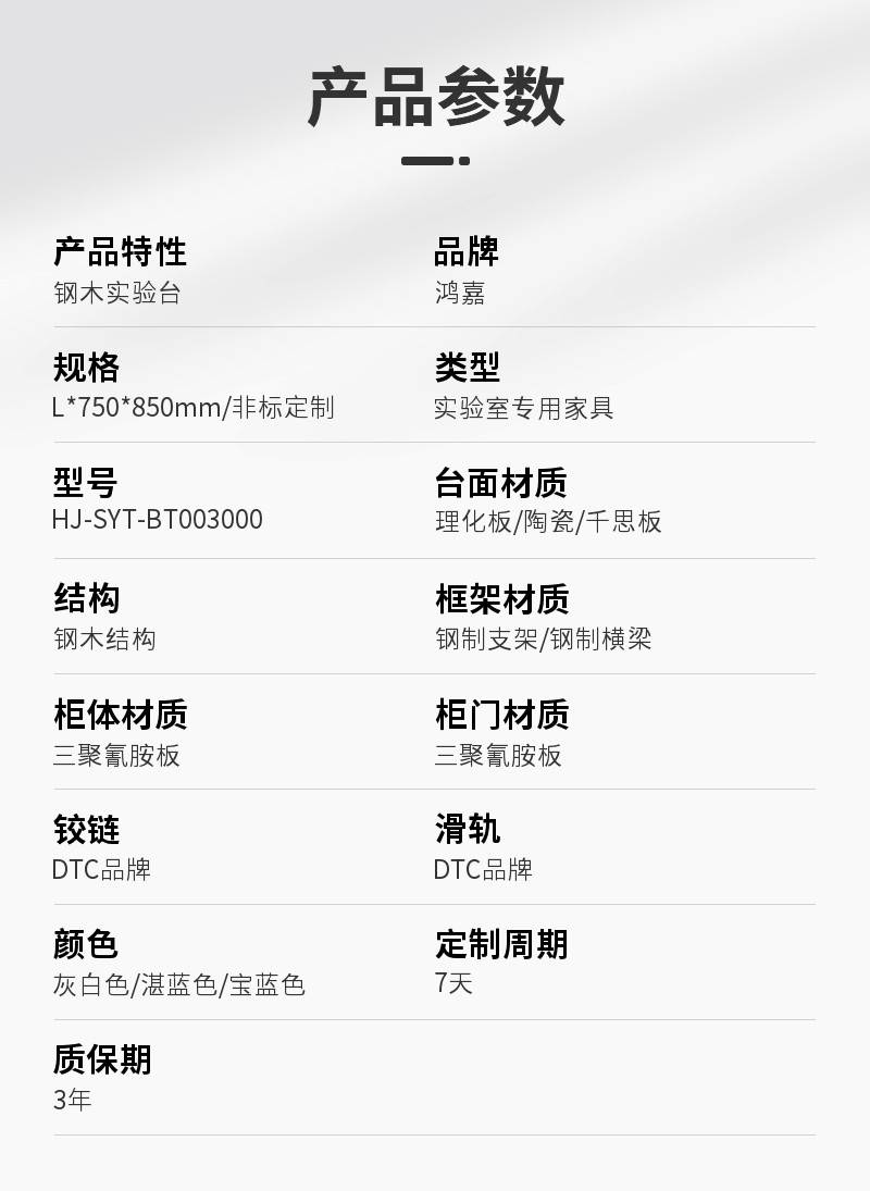 | 类型:实验室专用家具 | 型号:HJ-SYT-BT003000 | 台面材质:理化板/陶瓷/千思板 |
