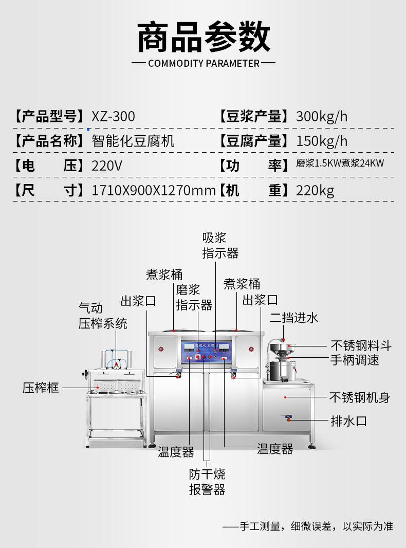 | 型号:XZ-300型全自动豆腐机(气动) | 产品用途:豆腐 豆浆 豆花 | 电压:220/380V |