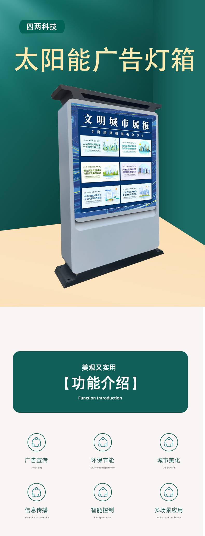 本页信息为河北四两科技集团有限公司为您提供的"四两 太阳能广告灯箱 广告标识牌 环保节能 城市美化"产品信息,如您想了解更多关于"四两 太阳能广告灯箱 广告标识牌 环保节能 城市美化"价格、型号、厂家请联系厂家,或给厂家留言。 进入店铺
