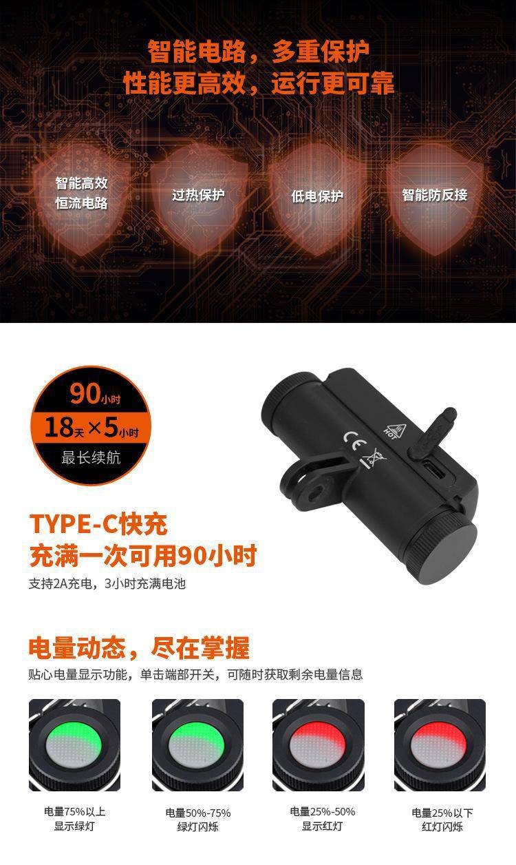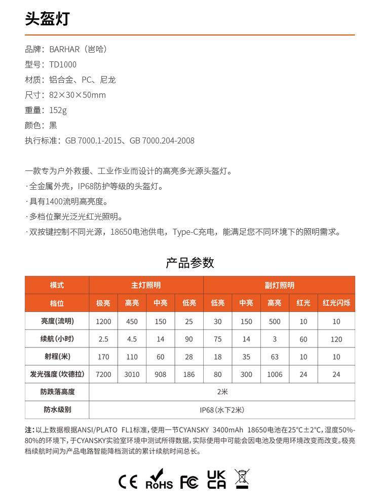 BARHAR岜哈 头盔灯 强光防水头灯聚光泛光红光高显色18650电池