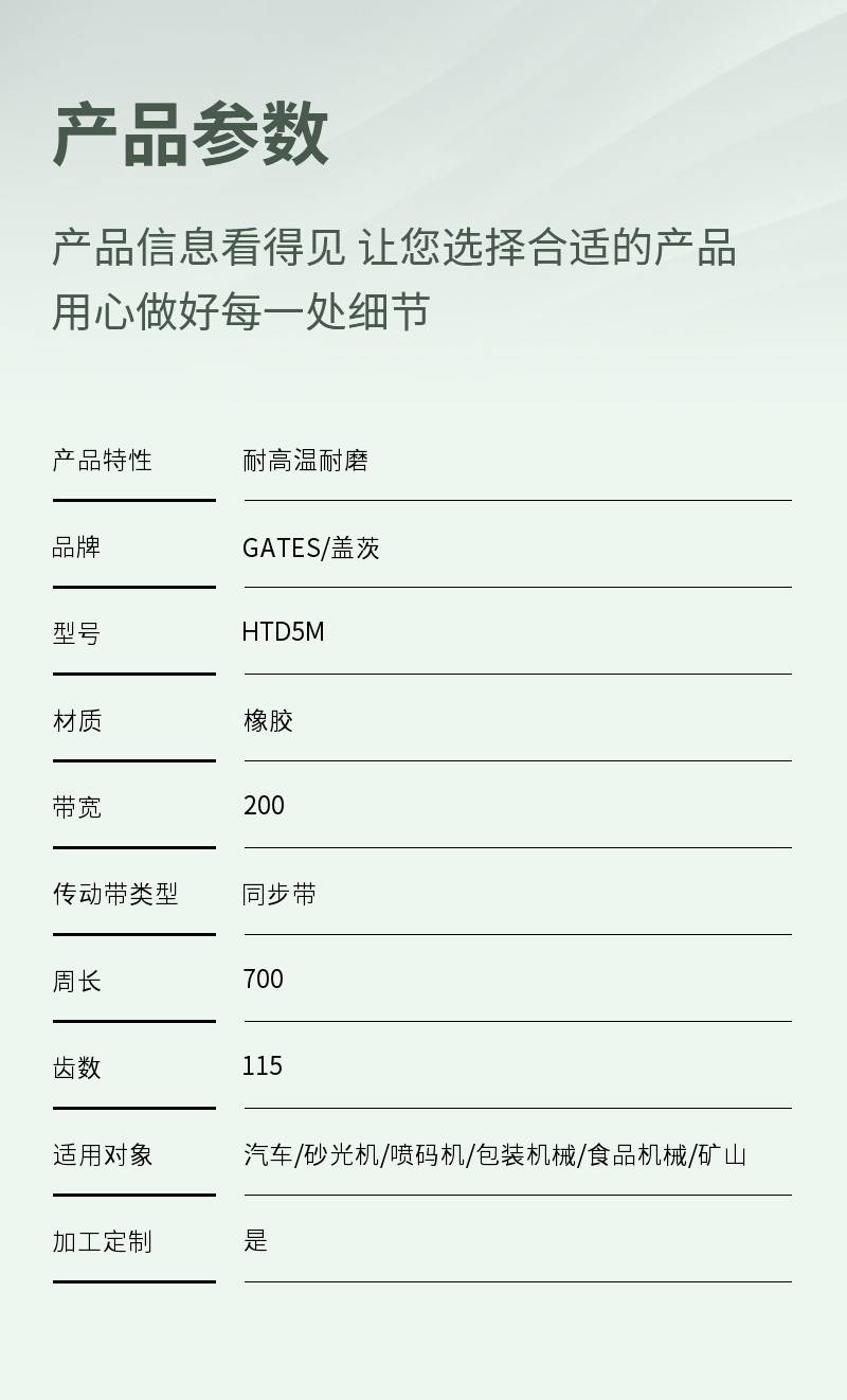 | 产品特性:耐高温耐磨 | 品牌:GATES/盖茨 | 型号:HTD5M |