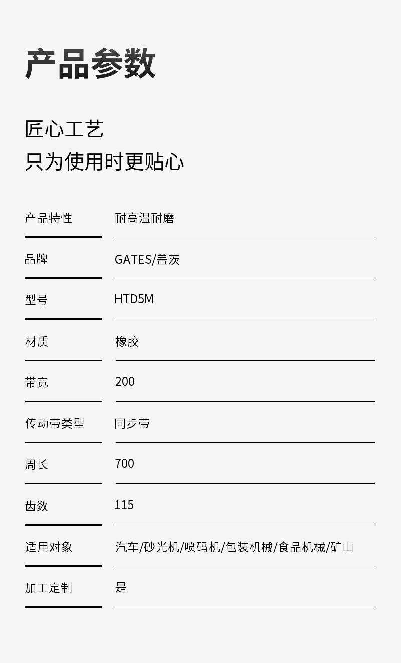 | 产品特性:耐高温耐磨 | 品牌:GATES/盖茨 | 型号:HTD5M |