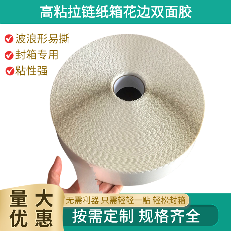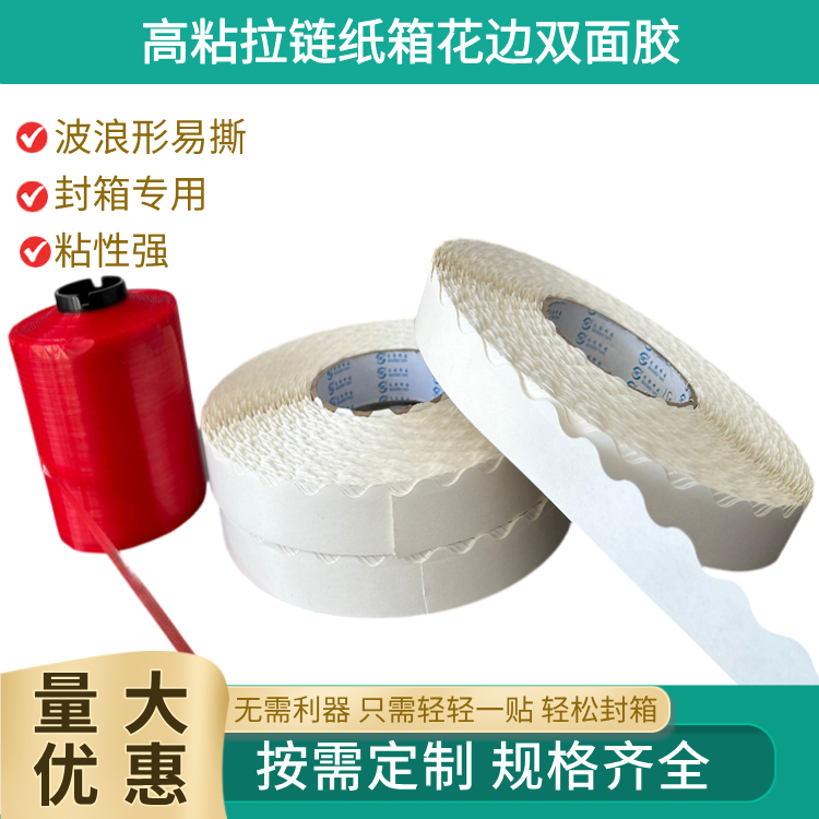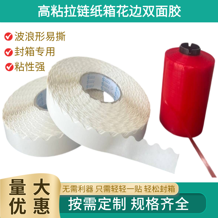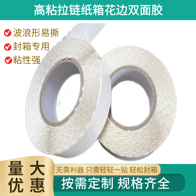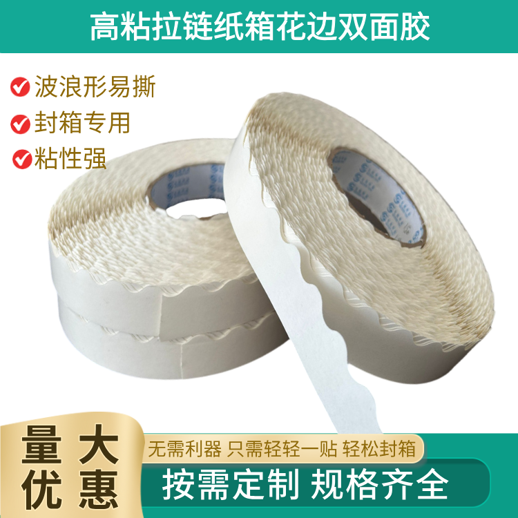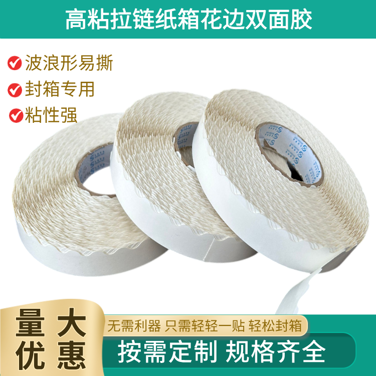 定制加工拉链箱波浪花边双面胶带批发易撕强粘彩盒留边双面胶