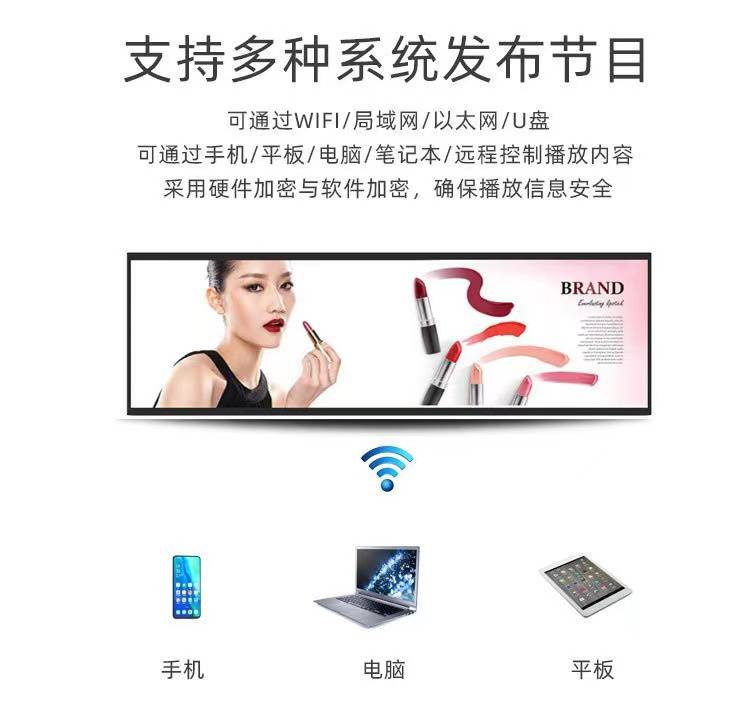 亿聚高清条形屏液晶广告机货架地铁商场壁挂安卓显示屏