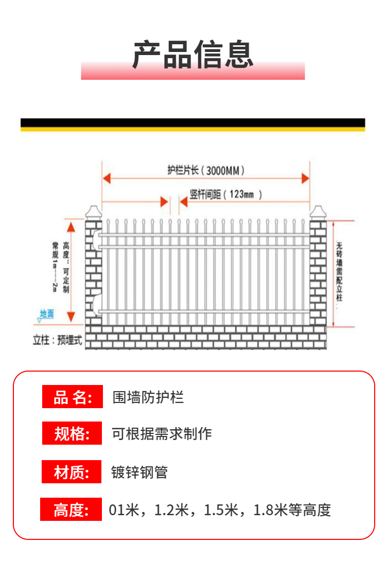 | 安装方式:胀栓螺丝 | 别名:锌钢围栏 | 可售卖地:各省 |