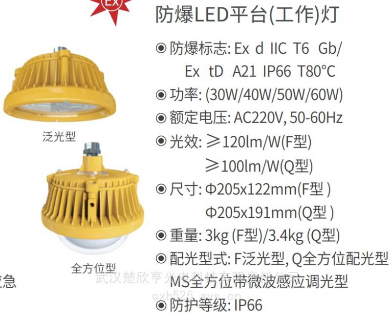 | 光源功率:50W | 类型:防爆照明灯 | 防护等级:IP66 |