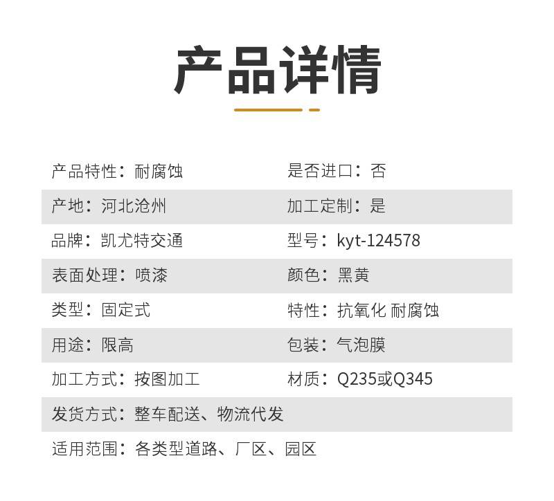 | 特性:抗氧化 耐腐蚀 | 用途:限高 | 包装:气泡膜 |