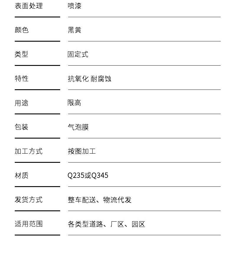 本页信息为河北凯尤特交通设施有限公司为您提供的"高速公路固定式道路限高架 限高杆制造厂家"产品信息,如您想了解更多关于"高速公路固定式道路限高架 限高杆制造厂家"价格、型号、厂家请联系厂家,或给厂家留言。 进入店铺 在线留言