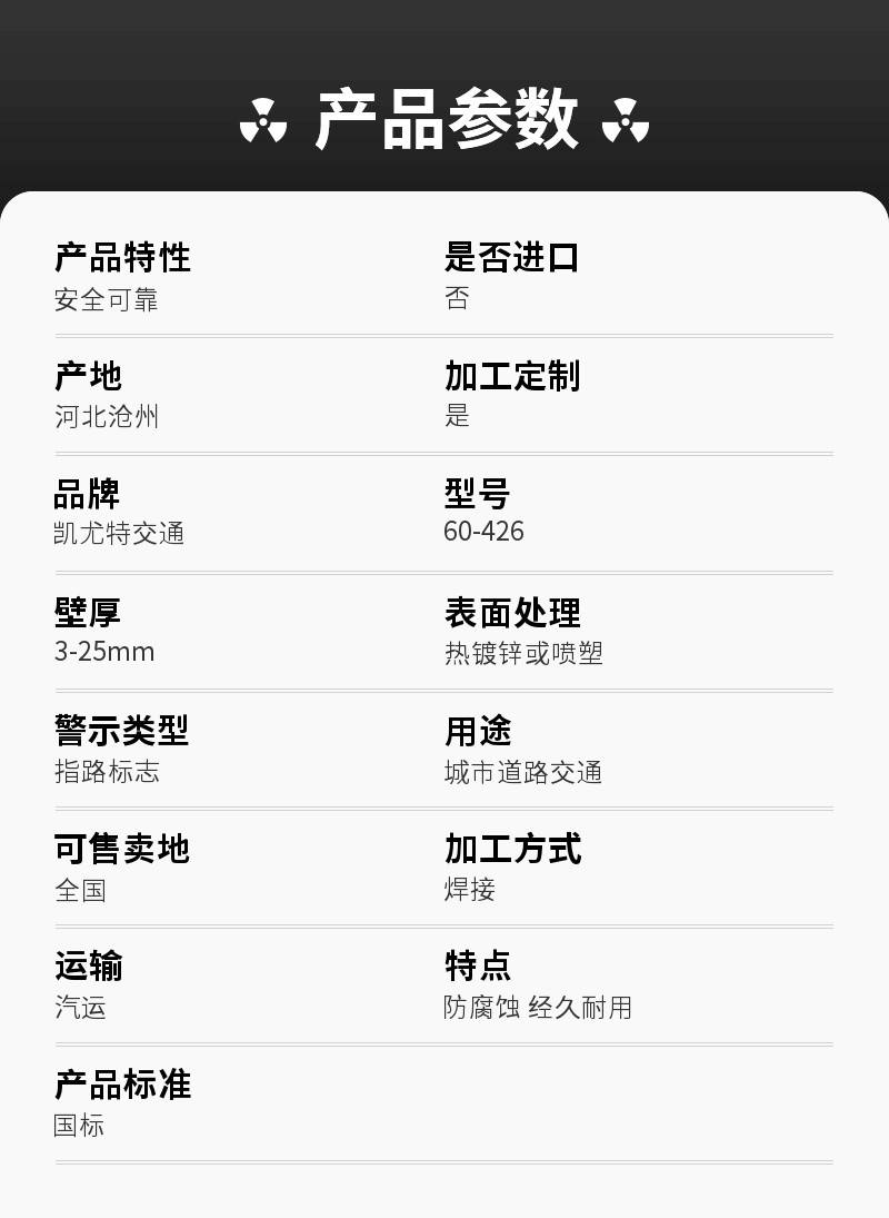 | 用途:城市道路交通 | 可售卖地:全国 | 加工方式:焊接 |