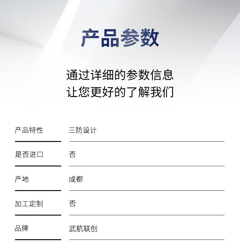 | 产品特性:三防设计 | 是否进口:否 | 产地:成都 |