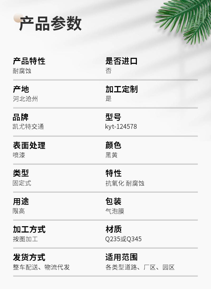 本页信息为河北凯尤特交通设施有限公司为您提供的"新疆固定式桥梁涵洞限高架 斜撑式限高杆生产厂家"产品信息,如您想了解更多关于"新疆固定式桥梁涵洞限高架 斜撑式限高杆生产厂家"价格、型号、厂家请联系厂家,或给厂家留言。 进入店铺 在线留言