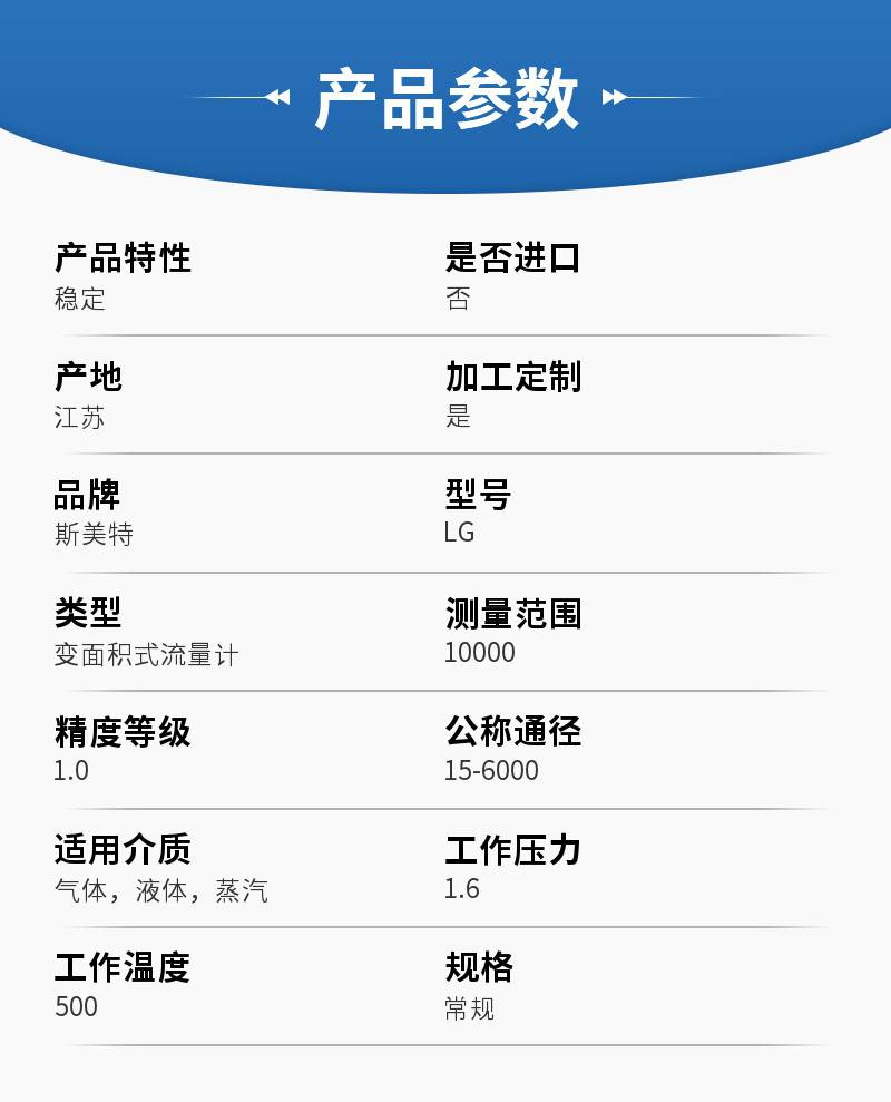 | 类型:变面积式流量计 | 测量范围:10000m3/h | 精度等级:1.0 |
