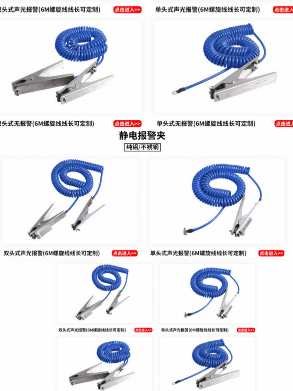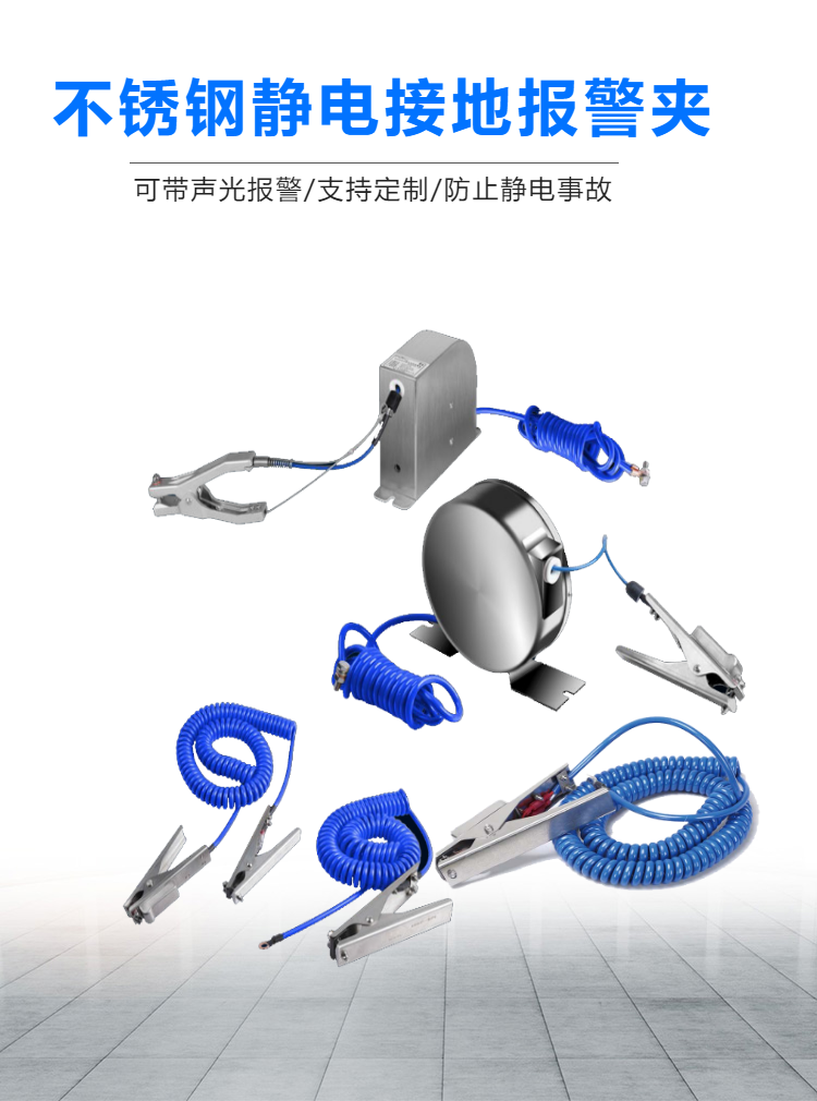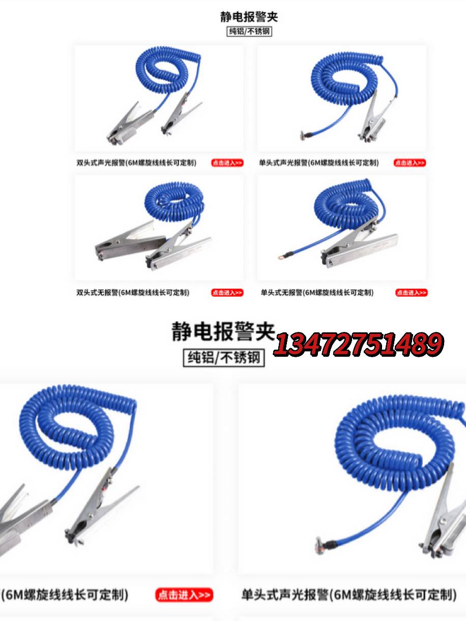 KD-1201A油罐车不锈钢静电接地夹带连接电缆蓝色弹簧线声光报警夹