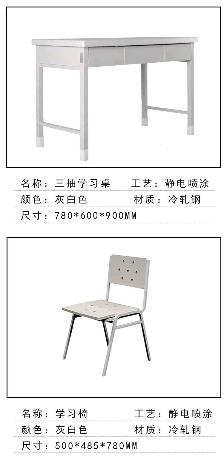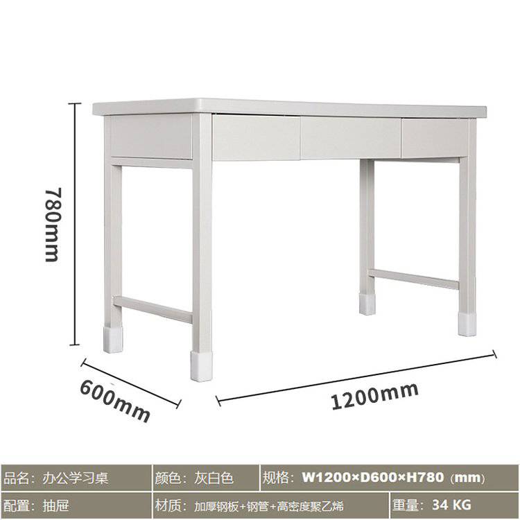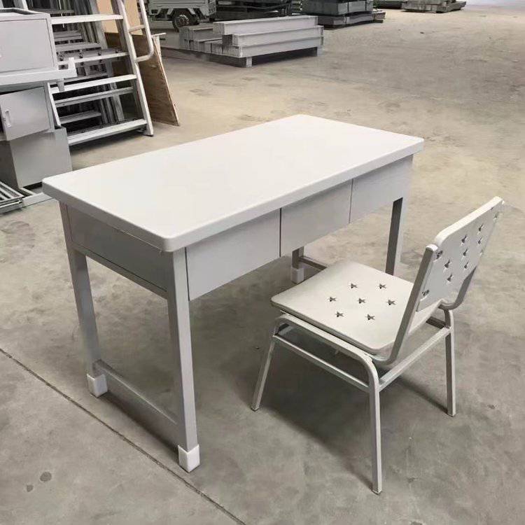 制式学习桌学校用钢制灰白色三斗电脑桌营具办公桌椅