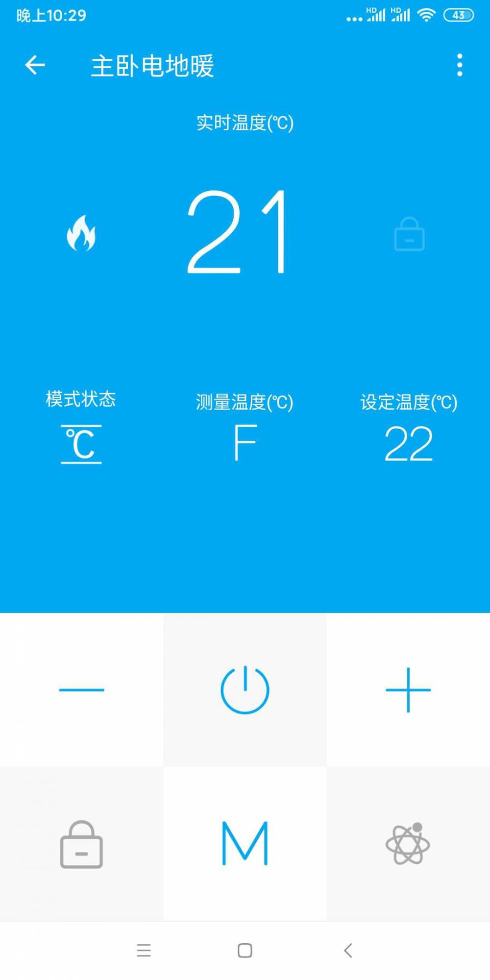 普通家用或小面积,每个房间一台智能湿度控制器实现独立控制,温度达到了会自动关闭,而且可以定时、可以分时段、可以手机远程控制,在外快回家即可手机远程启动地暖,到家就是暖和的,不用一直开着,不用关了到家再开,也不用等待升温,功能非常强大。而且电地暖热得快,反应快,所以电地暖使用相对于水地暖更灵活。