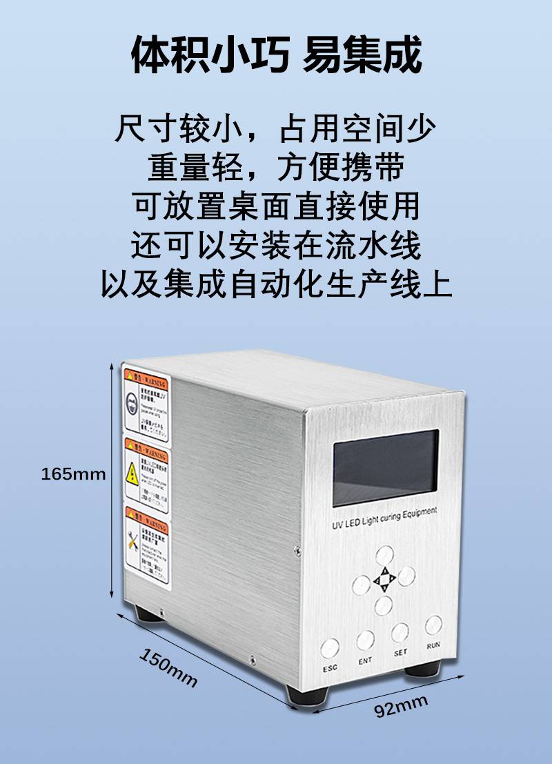 | 用途:uv胶水、无影胶等涂料 | 外形尺寸:92x150x165mm | UV主峰波长:365nm |