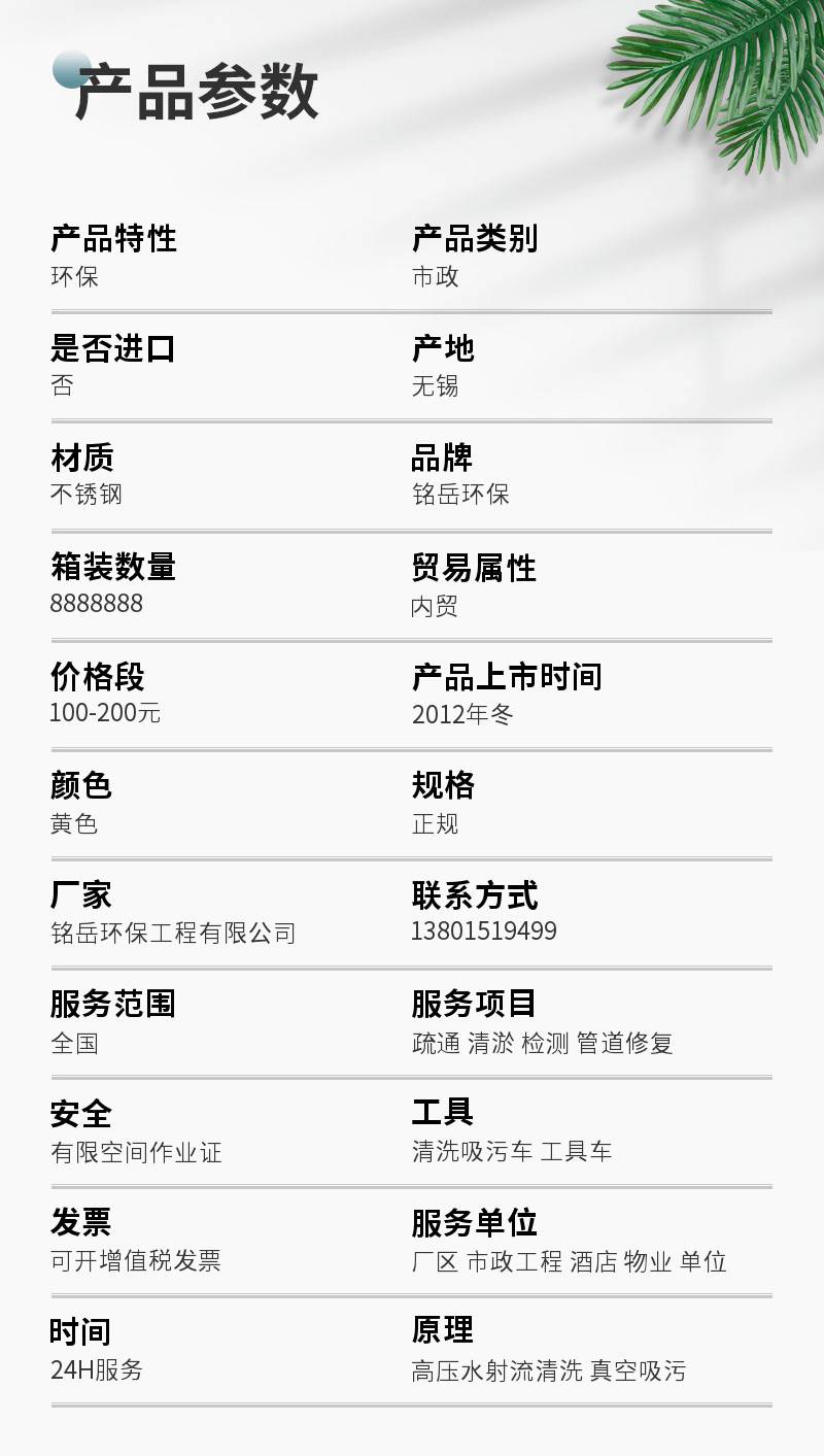 | 发票:可开增值税发票 | 服务单位:厂区 市政工程 酒店 物业 单位 | 时间:24H服务 |