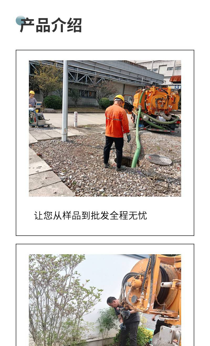 | 服务项目:疏通 清淤 检测 管道修复 | 安全:有限空间作业证 | 工具:清洗吸污车 工具车 |