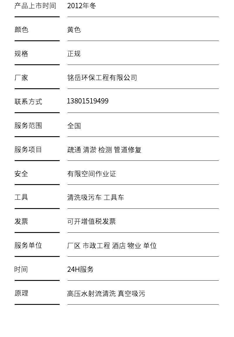 | 服务项目:疏通 清淤 检测 管道修复 | 安全:有限空间作业证 | 工具:清洗吸污车 工具车 |