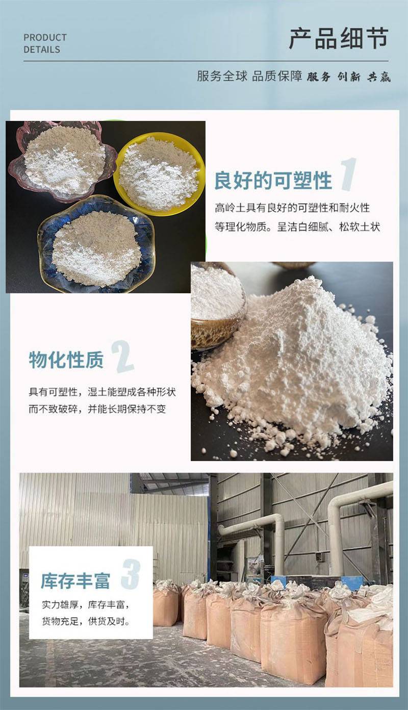 | 产品名称:高岭土 | 是否危险化学品:否 | 原产地:河北灵寿县 |