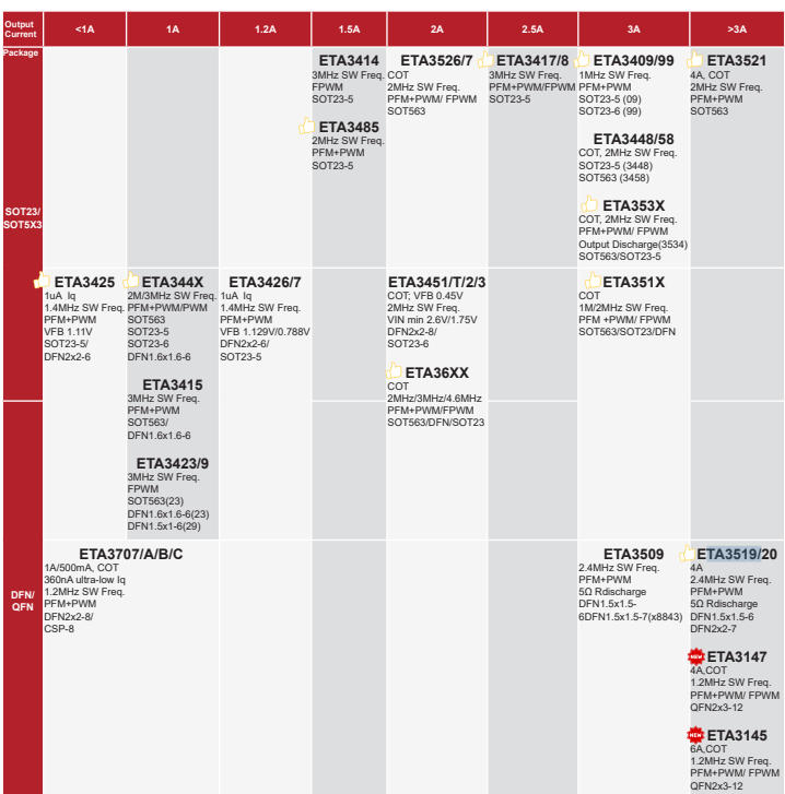 ETA4056D2I、ETA4056E8A、ETA4056D6I、ETA4056S2G、ETA5050V12S2F、ETA5050V18S2F、ETA5050V28S2F、ETA5050V33S2F、ETA5050V0S2F、ETA6983F3W、ETA7014S2G、ETA3451D2I、ETA2821S2G、ETA1483BE8A、