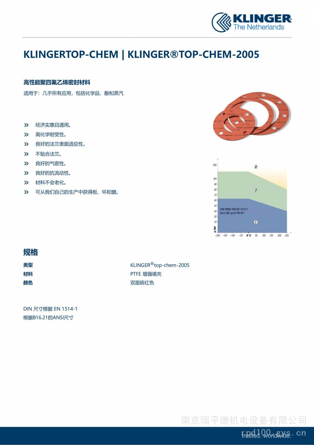 | 产品特性:耐高温 | 品牌:KLINGER | 型号:KLINGER top-chem 2005 |