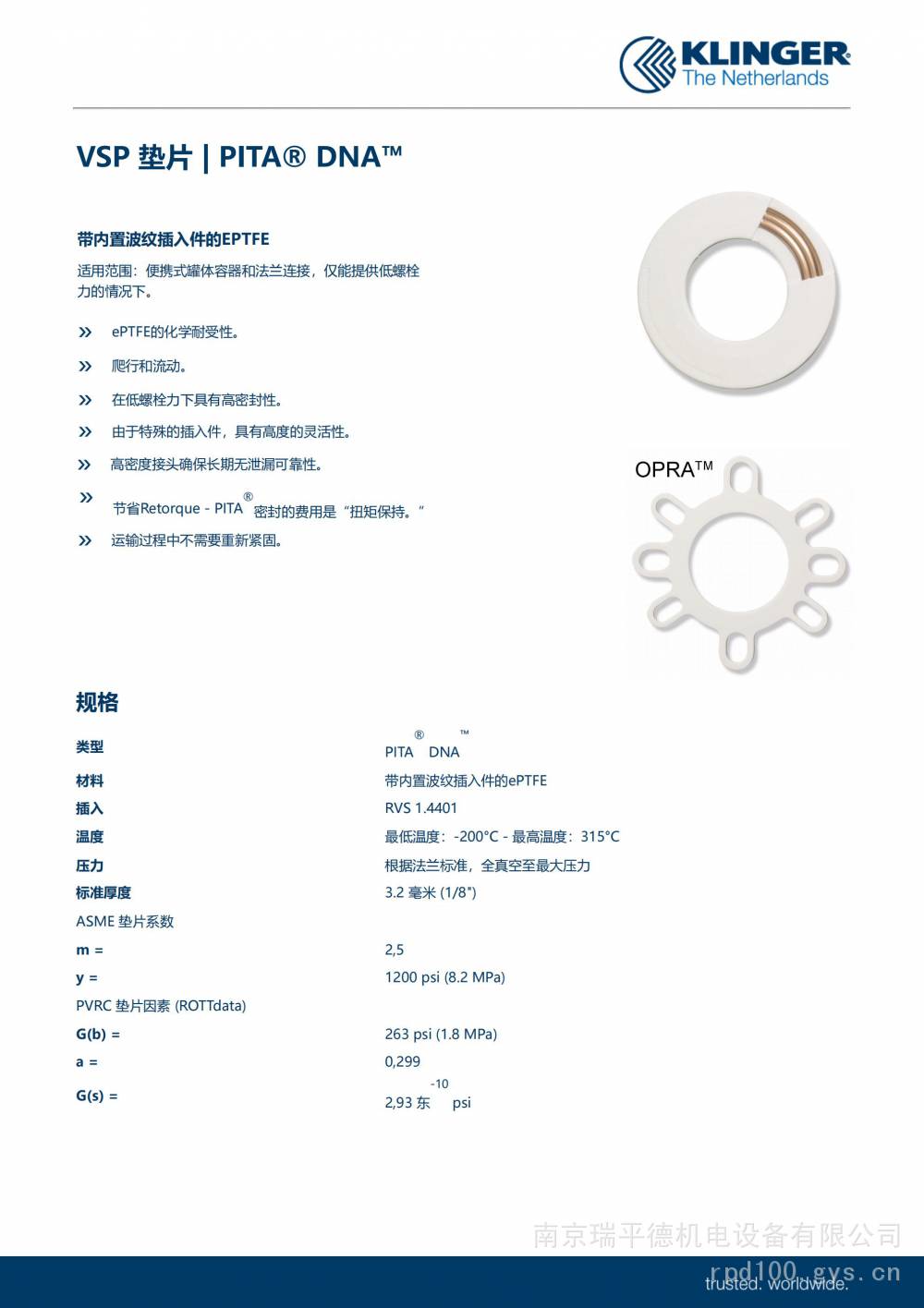 本页信息为南京瑞平德机电设备有限公司为您提供的"克林格 KLINGER PITA? DNA? VSP 垫片 内置波纹插入件的EPTFE 工业密封"产品信息,如您想了解更多关于"克林格 KLINGER PITA? DNA? VSP 垫片 内置波纹插入件的EPTFE 工业密封"价格、型号、厂家请联系厂家,或给厂家留言。 进入店铺