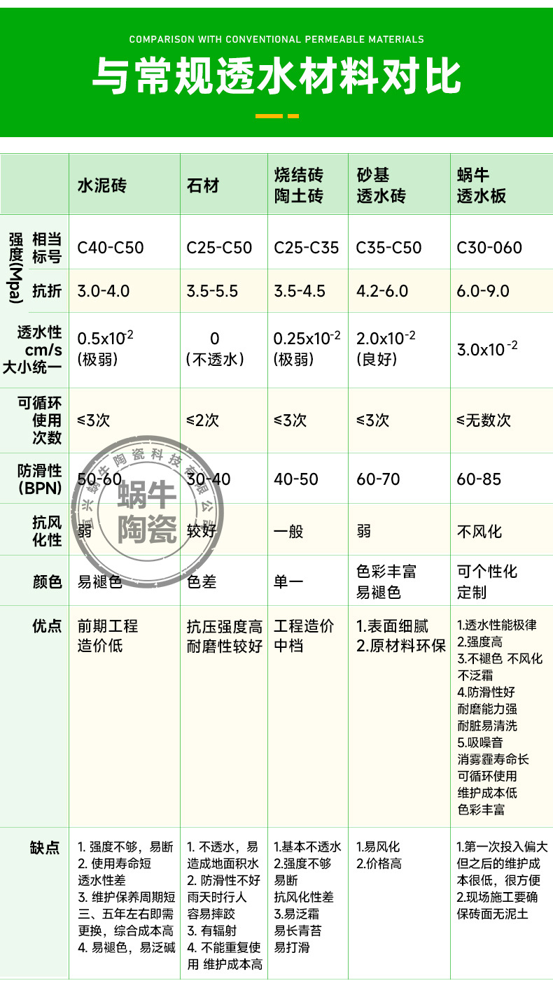 本页信息为宜兴蜗牛陶瓷科技有限公司为您提供的"高温高压 陶瓷透水砖 花岗岩透水板 微晶透水砖 高温烧结陶瓷透水砖"产品信息,如您想了解更多关于"高温高压 陶瓷透水砖 花岗岩透水板 微晶透水砖 高温烧结陶瓷透水砖"价格、型号、厂家请联系厂家,或给厂家留言。 进入店铺