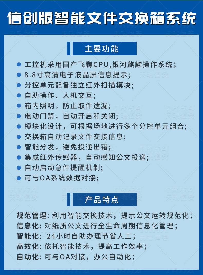 本页信息为北京天瑞恒安科技有限公司为您提供的"智能文件存放柜 文件交换柜 国企单位档案管理智能柜子 人脸识别功能"产品信息,如您想了解更多关于"智能文件存放柜 文件交换柜 国企单位档案管理智能柜子 人脸识别功能"价格、型号、厂家请联系厂家,或给厂家留言。 进入店铺