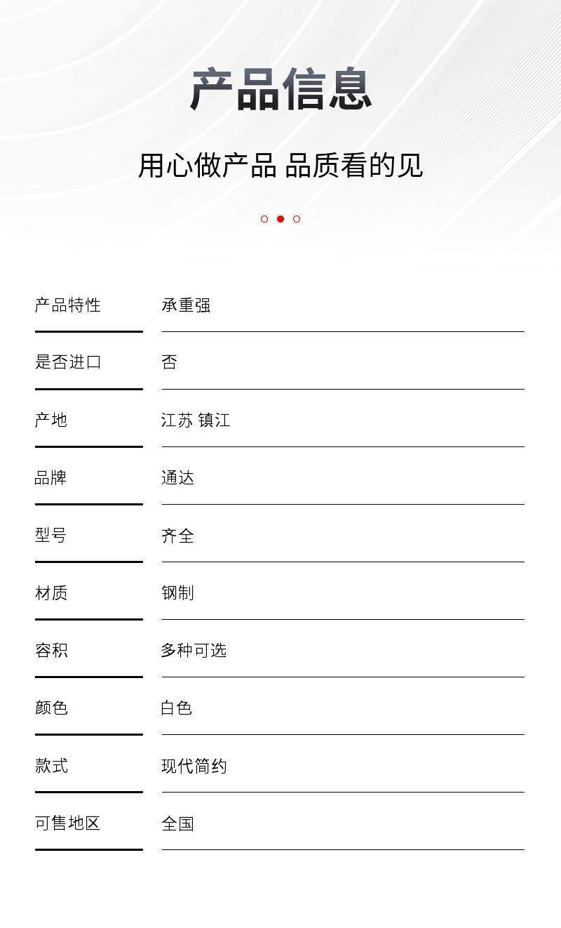 镇江通达档案装具设备有限公司是一家以生产、研制、开发档案密集架及图书装具系列、 安防监控电视墙操作台系列、仓储货架系列、中药柜药架系列、办公文件柜系列等全钢制产品为主导的专业化科技型现代企业。经过多年的发展,现已成为我国档案装具和图书装具行业的骨干企业和重要生产基地,是该行业实力生产和科技创新的先锋力量。 本公司创建于1997年,经过十几年的努力和发展,凭借雄厚的技术力量、精良的生产设备,我们形成了完整的产品系列,拥有技术精湛的技术管理人员,完善的质量***体系,完备的检验手段。在企业的发展过程中我们特别重视新技术、新产品的引进和开发,不断实现产品的升级换代,以优良的质量、完善的服务赢得了用户,占领了市场。 本公司将秉奉实业报国、奉献社会的创业宗旨,崇尚***、追求***的企业精神,***进取创***、精工细琢保质量的经营观念,并吸纳科技人员及专业工程师,为企业发展提供了可靠的保障。 本公司是国家办公用品设备质量监督检验中心***企业,安徽省档案局***经销企业,***信用企业,被诸多***采购中心选为***供货商。 本公司按照***制定了***的生产工艺和质量检测体系,按***900—2000标准制定和实施管理体系,打造精品空间、铸就金字招牌,视质量为生命,以科技求发展。公司始终“以人为本、科技***、求实创新、勇于***”的企业理念,为您提供高质量的产品和优质的服务,多年来公司以优质的产品、优良的售后服务、可靠的信誉,赢得了众多客户的一致赞赏和信赖。公司将继续在箱柜行业里以超前的意识、***的技艺、良好的质量理念与大客户携手合作,开发制造更好的产品。 我们的追求 :努力把企业打造成全国的钢制箱柜生产基地。 我们的目标 :追求***,创造更好! 我们的宗旨 :服务社会,德惠民生。 我们的哲学 :精品出自人品,市场赢于人心!