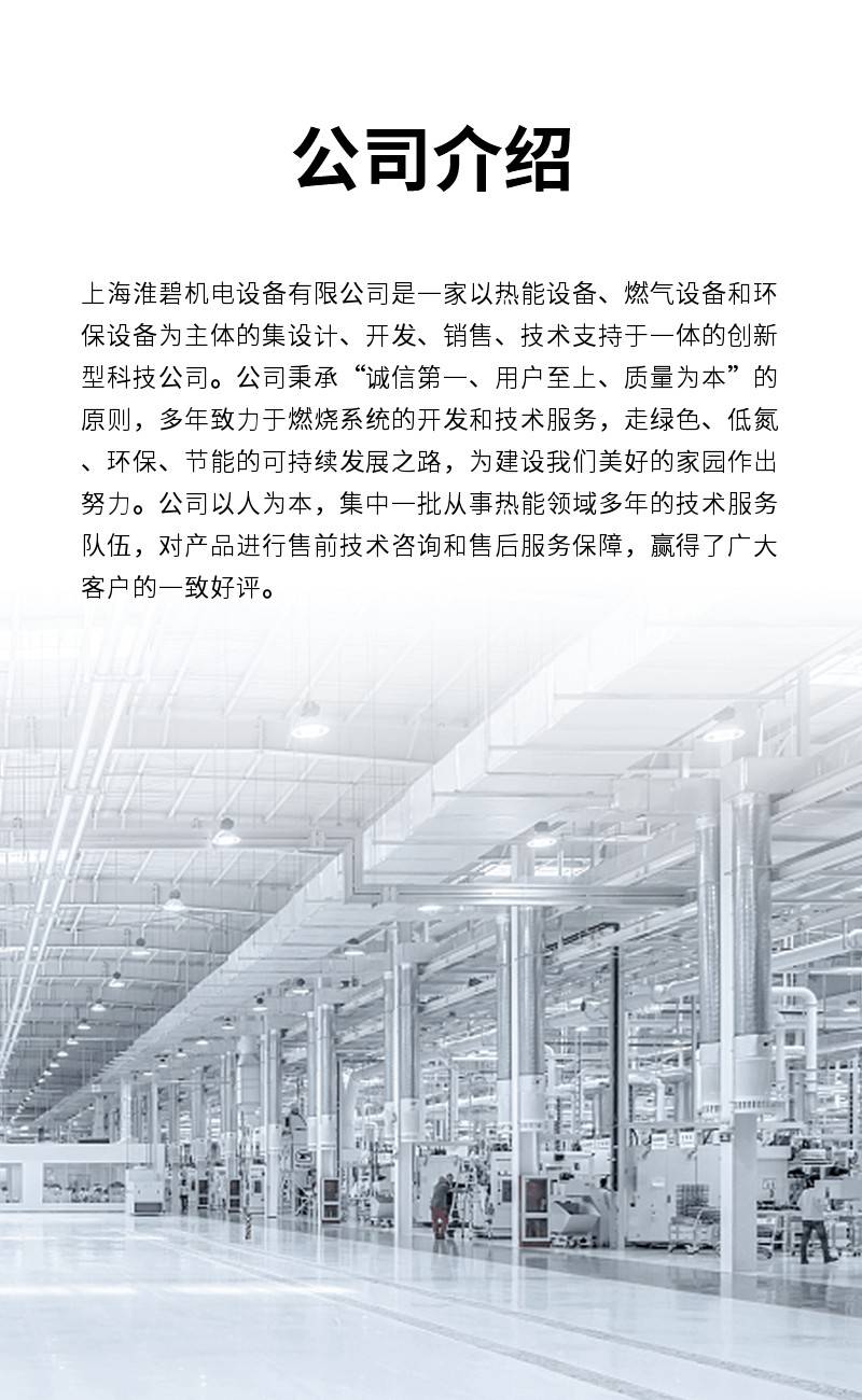 上海淮碧机电设备有限公司是一家以热能设备、燃气设备和环保设备为主体的集设计、开发、销售、技术支持于一体的创新型科技公司。公司秉承“诚信***、用户至上、质量为本”的原则,多年致力于燃烧系统的开发和技术服务,走绿色、低氮、环保、节能的可持续发展之路,为建设我们美好的家园作出努力。公司以人为本,集中一批从事热能领域多年的技术服务队伍,对产品进行售前技术咨询和售后服务保障,赢得了广大客户的一致好评。 公司与世界知名燃烧器及燃烧配件厂家都有紧密的合作,目前代理的燃烧器主要品牌有意大利利雅路(RIELLO)、百得(BALTUR)、意高(ECOFLAM),德国威索(WEISHAUPT),美国麦克森(MAXON),日本正英(SHOEI)、奥林佩亚(OLYMPIA)等;燃烧配件品牌有德国(SIMENS)、冬斯(DUNGS)、霍科德(KROM SCHRODER),美国霍尼韦尔(HONEYWELL)、费希尔(FISHER),法国桑泰克(SIUNTEC),丹麦丹佛斯(DANFOSS),日本山武(YAMATAKE)等,同时承接锅炉煤改气项目、低氮改造项目,并提供全自动一体化控制柜,热风炉,热水锅炉及水处理设备。产品广泛应用于锅炉、烤漆设备、熔炼炉、焚烧炉、干燥设备、纺织定型机、熨烫设备、食品烘干设备、沥青加热炉、厨房设备、工业窑炉等以及其它热能机械配套设备。