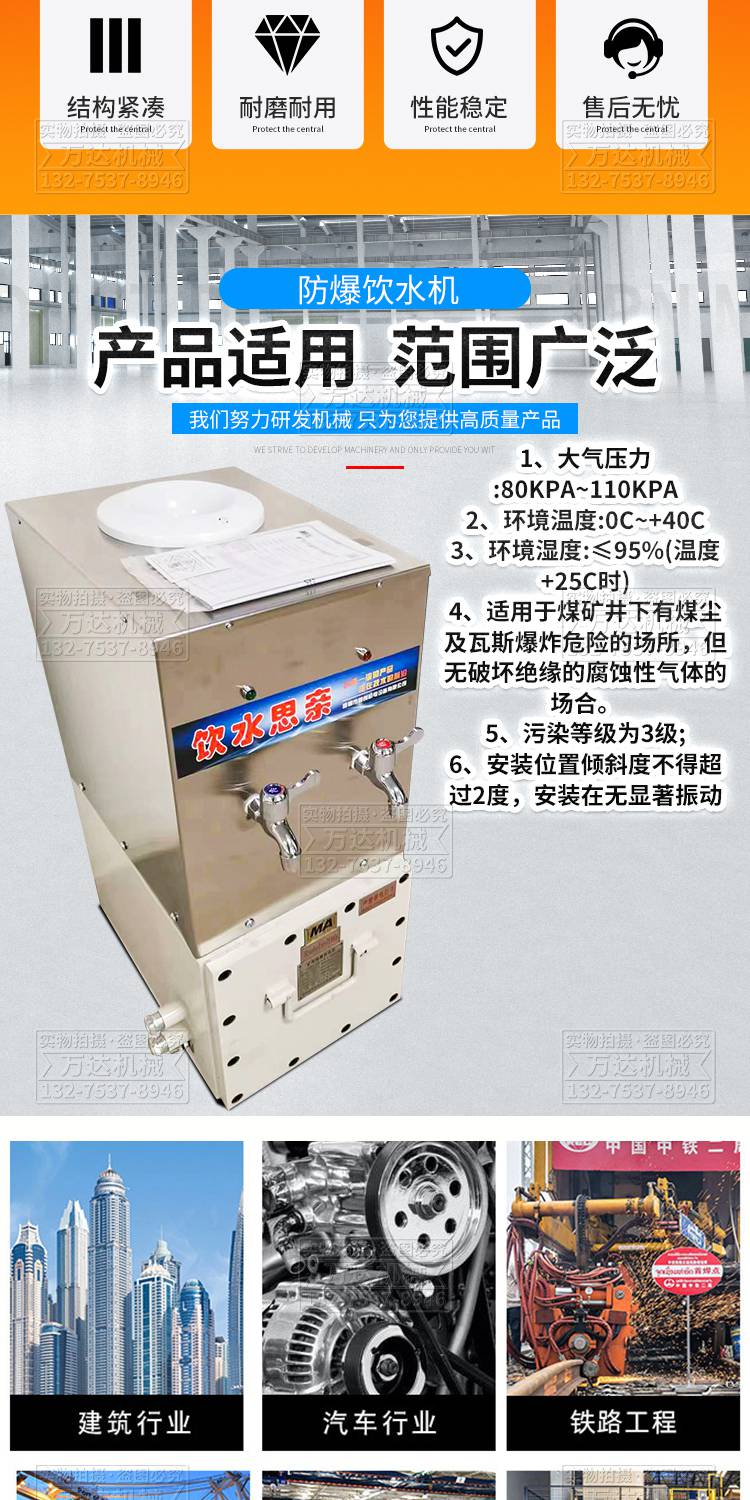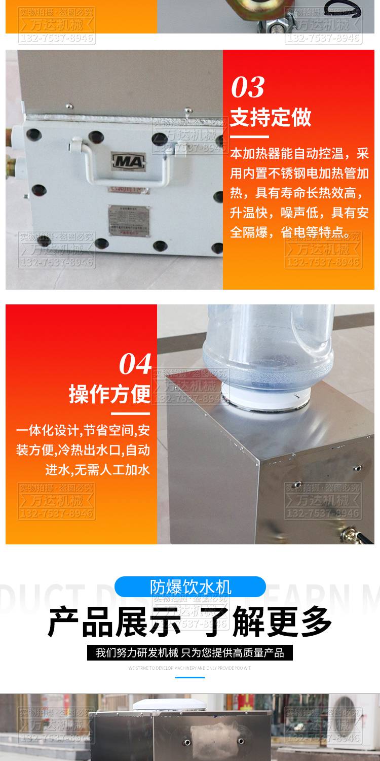 本页信息为济宁万达机械设备有限公司为您提供的"井下用本安型饮水器 煤矿热饭饮水机能耗低矿用隔爆防尘饮水设备"产品信息,如您想了解更多关于"井下用本安型饮水器 煤矿热饭饮水机能耗低矿用隔爆防尘饮水设备"价格、型号、厂家请联系厂家,或给厂家留言。 进入店铺