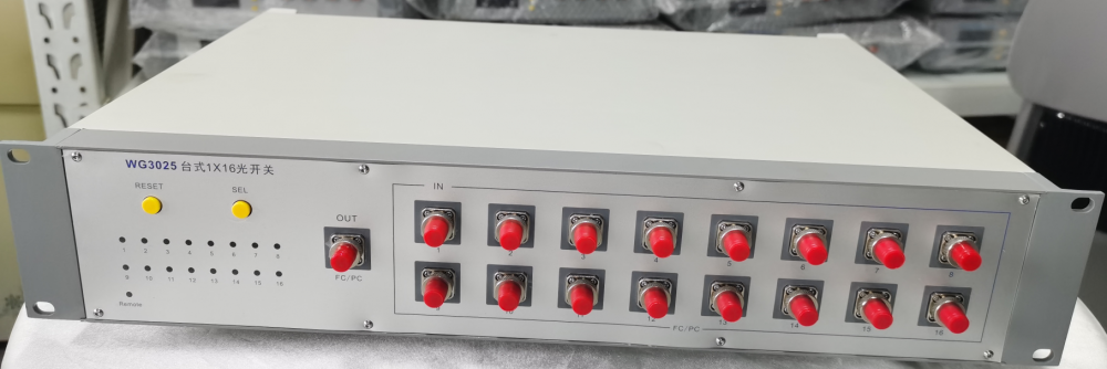 WG3025 是一款机械式光 1x16 开关设备,集成了时序控制电路和通信接口,具备 操作按钮和 LED 指示灯,便于操控。该设备工作于单模 1270~1650nm 或多模 850nm 窗 口,插入损耗低,功能稳定可靠,重复性高。除了具备手动操作功能外,该仪表还具 有 RS232 和 USB 接口,可由 PC 发送指令完成所有操作和控制,便于和其他测试仪器 一起构成自动化测控系统。特别适合企业、工厂和研究单位测量实验等。