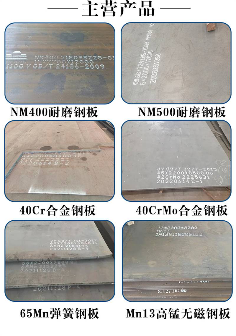 耐磨板:nm360、nm400、nm450、nm500、nm550、mn13无磁钢板
